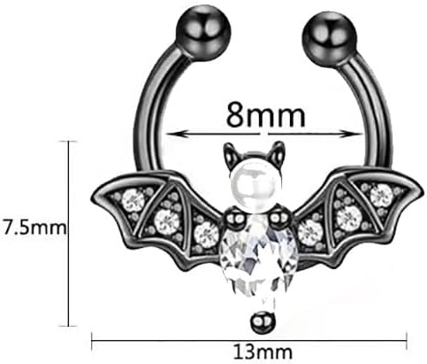 Fashion Design: Fake nose septum rings are never out of date, featuring a CZ bat design, bring you more shiny and cute nose jewelry decorate your nose individual.