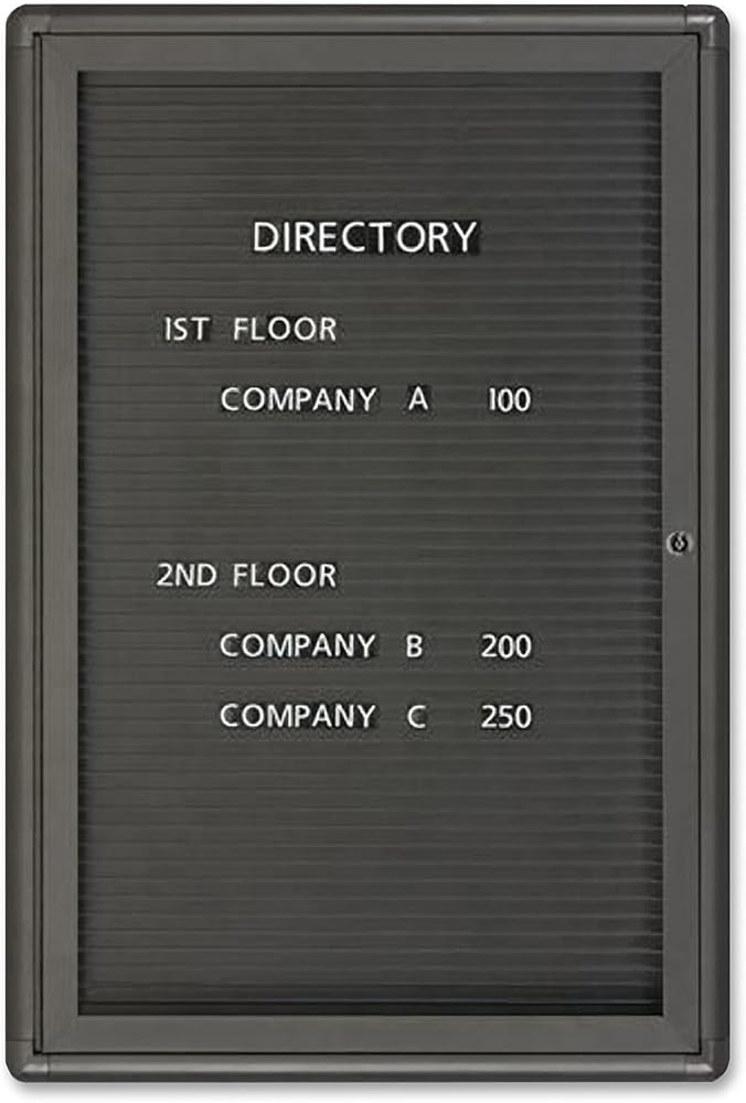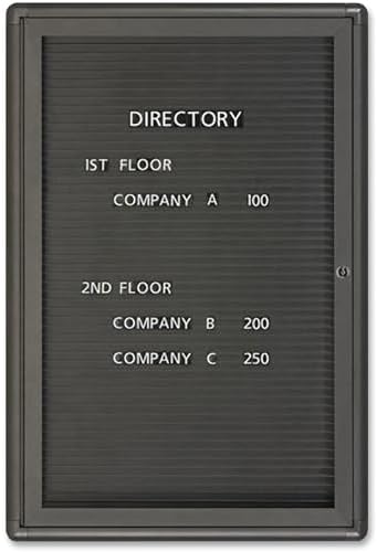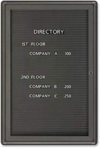 Magnetic Letter Message Board features a graphite finish frame with modern detailing and rounded corners. The magnetic surface features evenly spaced ridges for the precise alignment of letters. Information is protected by shatterproof windows and a locking door. Molded magnetic letters are sold separately.