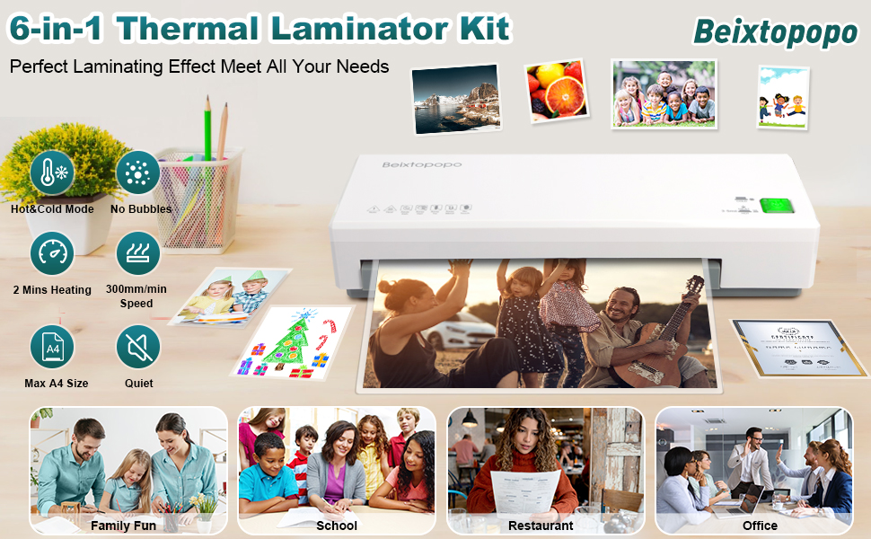 【Laminating Up to A4 Size】The A4 Thermal machine is compatible with 9"(230mm) paper and 3-mil and 5-mil laminating pouch thickness(Up to 0.6 mm maximum thickness) You will be able to do all your office, school, and home laminations from laminator. It's incredibly satisfying to see your photos, letters, drawings, cards, DIY crafts, menus all as good as new.