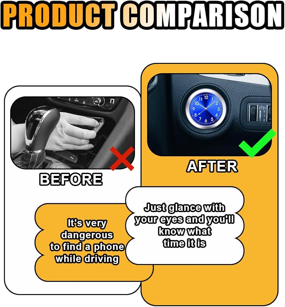 The mini car clock provides a clear view even at night, increases your driving convenience, and protects your driving safety to a certain extent.