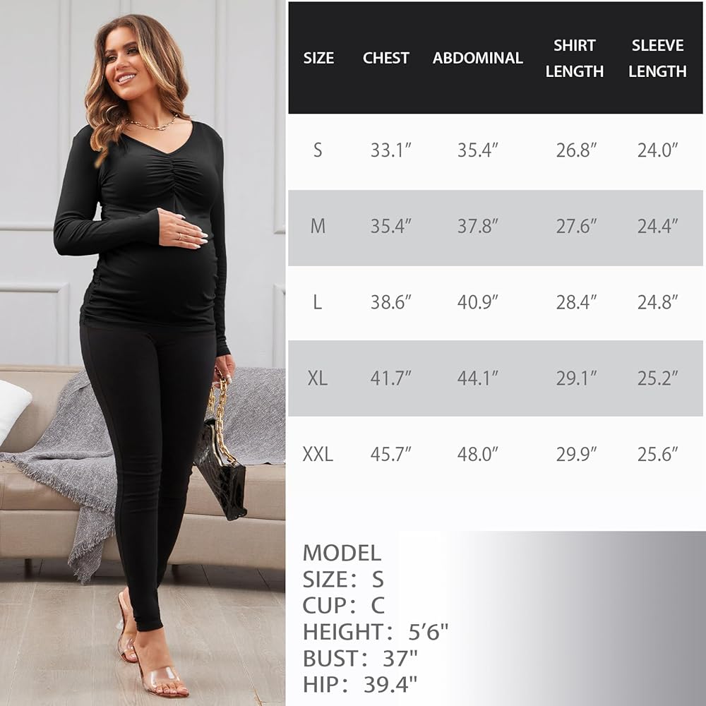 MATERIAL: The casual maternity tops are made of soft, breathable, and high stretch fabric, perfect for all stages of pregnancy and comfortable to wear