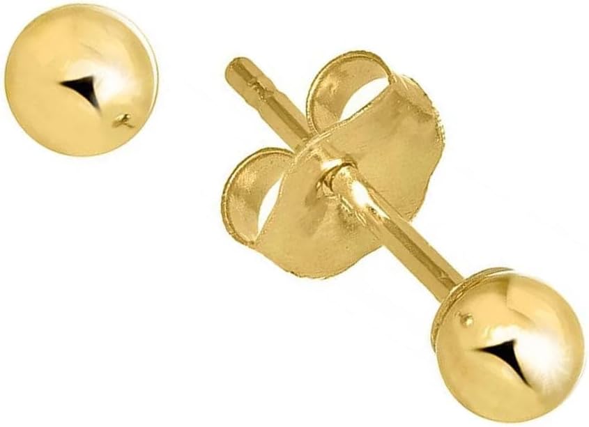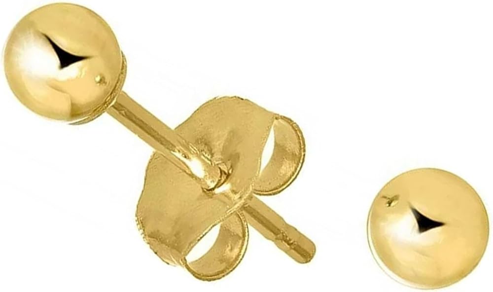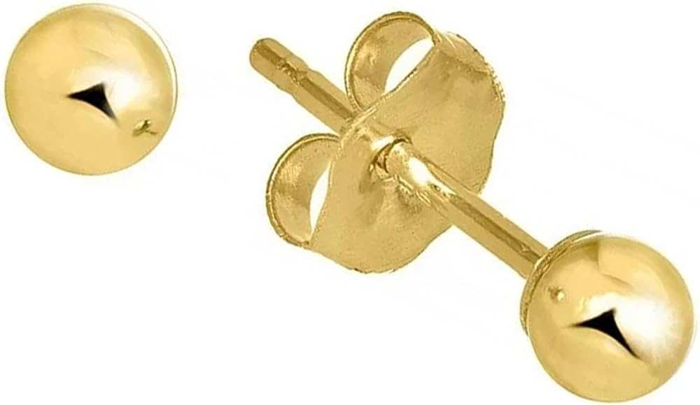 - The dimensions of 14k yellow gold ball stud earrings are 3mm in diameter.
