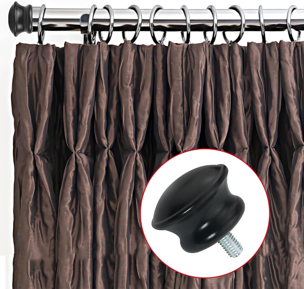 Appearance: The curtain rod ends have a classic mushroom shape design, suitable for matching with various colors of curtain rods. Confirm the size of the curtain rod head and curtain rod, as well as the size of the screws before ordering.