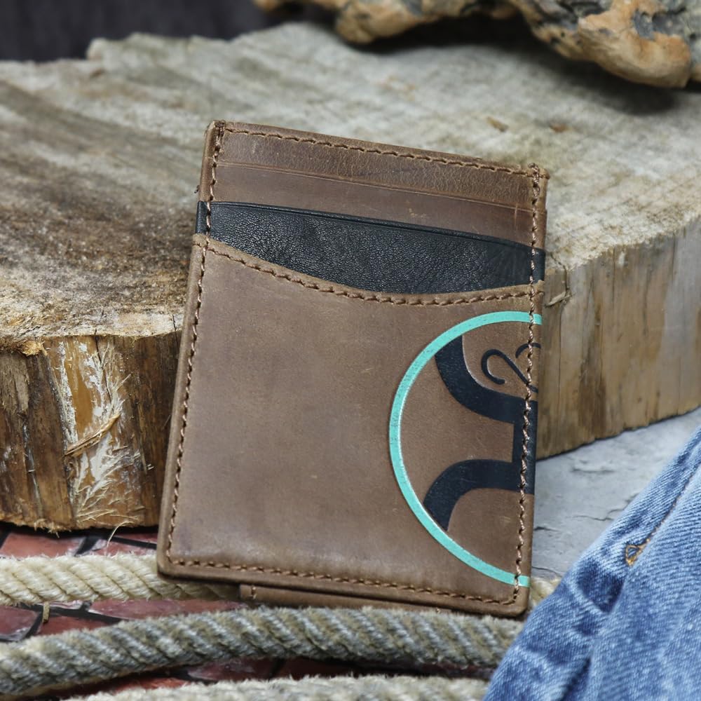 HOOEY 2.0 Leather Men's Money Clip Wallet (HOOEY 2.0 - Brown/Black/Turquoise)