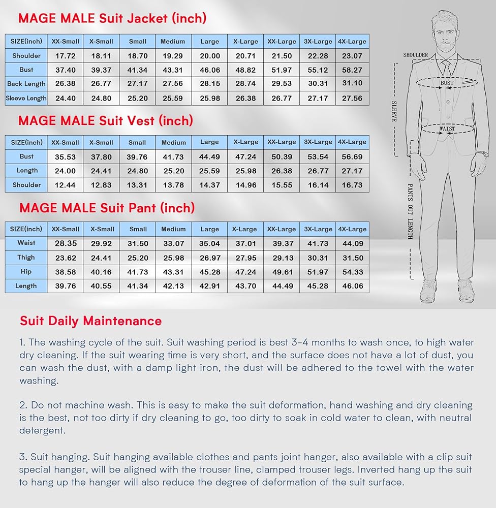 【Care Instruction】Dry clean recommended if conditions permit,if you have to hand wash it,please keep the water temperature below 40 degrees and wash gently steam ironing,hang the tuxedo on the hangers when you are not wearing suit