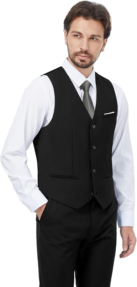 【3 Piece Suits】Jacket have 2 side pockets 1 chest pocket and 2 inside pockets,one button closure,notch lapel,side vents; Vest have 2 side pockets and 1 fake chest pocket,adjustable back tie; Pants have 2 insert pockets and 2 back pockets,zippered fly,button end and adjustable waist tab