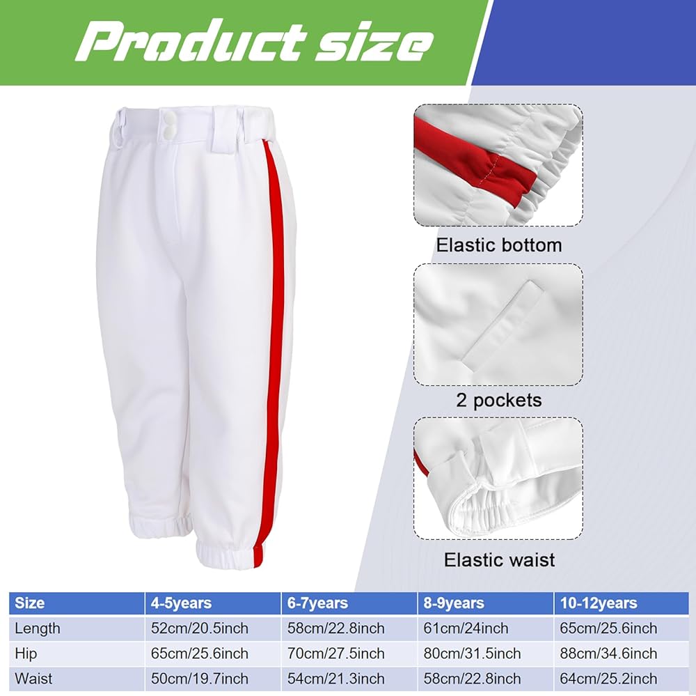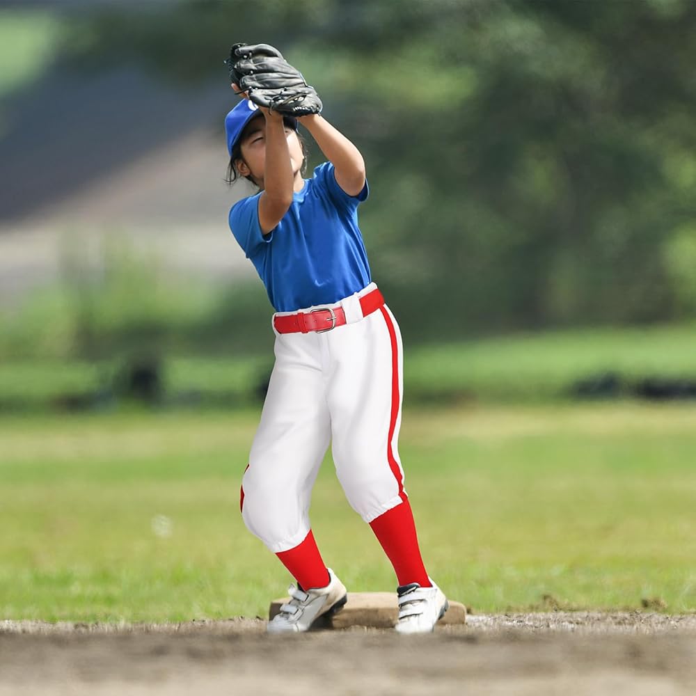 Adjustable and Stylish Belt: coming along with the pants is an adjustable softball belt made from elastic material, and the tail of the belt is provided with adjustable buttons to be designed to give a custom fit no matter the waist size, varying from about 18.1-31.5 inches/ 46-80 cm; This belt showcased in the picture does not compromise on style even while ensuring a snug fit for boys and girls