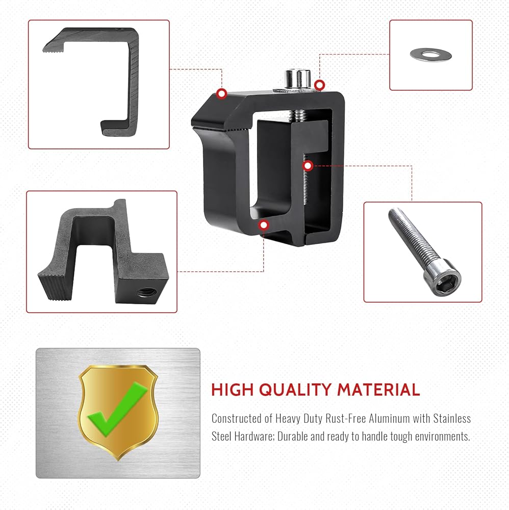 P-AC(4)-09:AA-Rack Set of 4 Aluminum C-clamps For Non-Drilling Truck Rack & Camper Shell Installation.