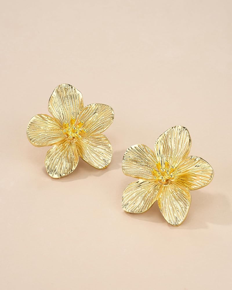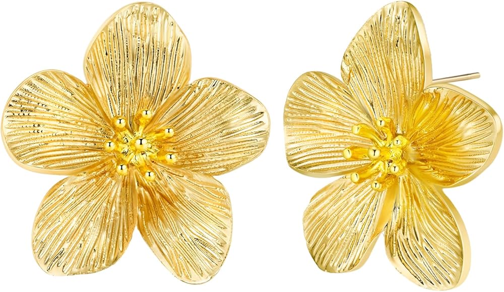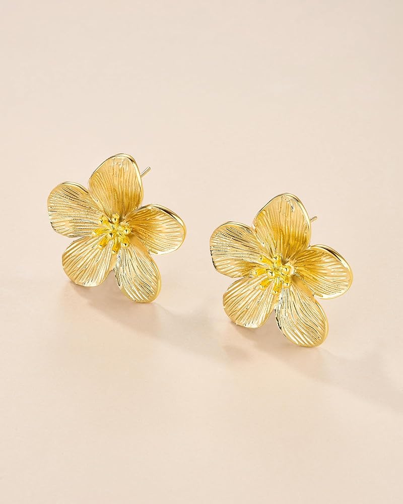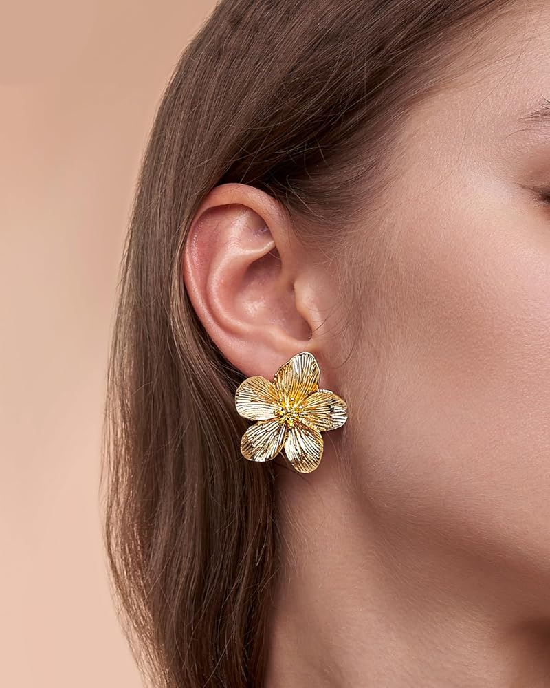 Unique and Trendy; Up your jewelry collection with these gorgeous gold womens giant flower artsy prom earrings. These aesthetic ethnic trending gold plated earrings are a must have for the trendy individual. Wear them daily or special occasions. Perfect for the beach, festival and gift!