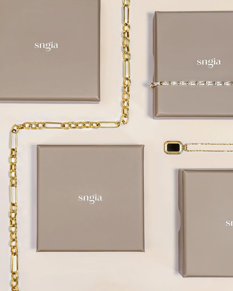 American-Owned & Gift Ready; Sngia was born in and operated from sunny Los Angeles, California. Every piece of jewelry is hand packed with love and comes with our premium signature packaging. Guaranteed to impress!