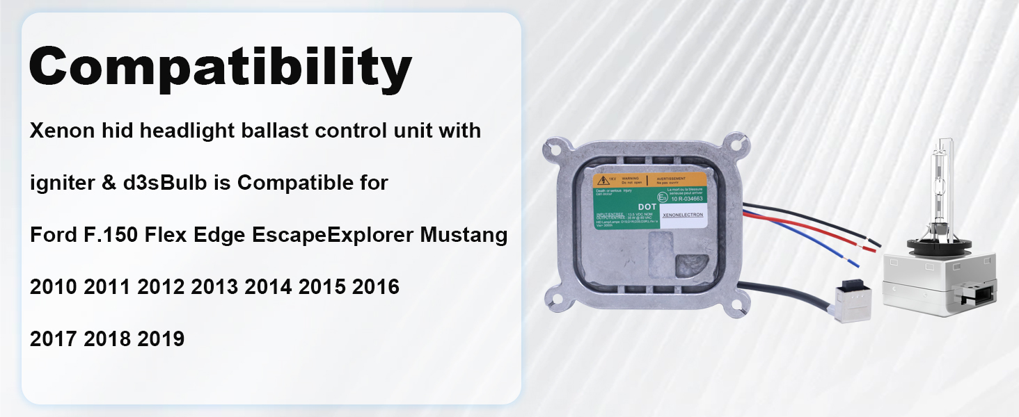 Compatibility-Xenon hid headlight ballast control unit with igniter & d3s Bulb is Compatible for Ford F-150 Flex Edge Escape Explorer Mustang 2010 2011 2012 2013 2014 2015 2016 2017 2018 2019