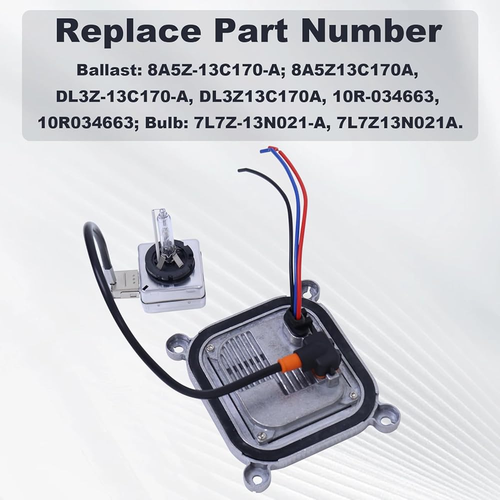 Replace Part Number: Ballast: 8A5Z-13C170-A; 8A5Z13C170A, DL3Z-13C170-A, DL3Z13C170A, 10R-034663, 10R034663; Bulb: 7L7Z-13N021-A, 7L7Z13N021A plug and play, and is directly installed or replaced without any procedures.