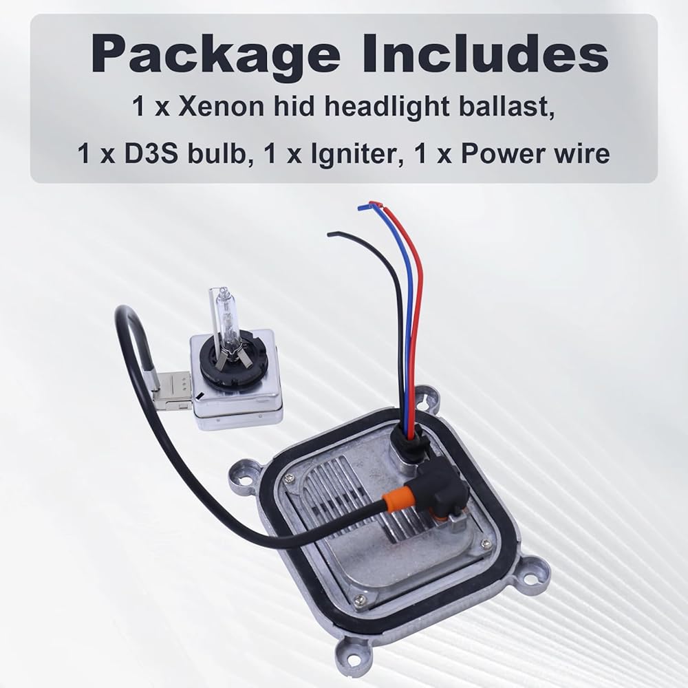 Package Includes: 1 x Xenon hid headlight ballast, 1 x D3S bulb, 1 x Igniter, 1 x Power wire.