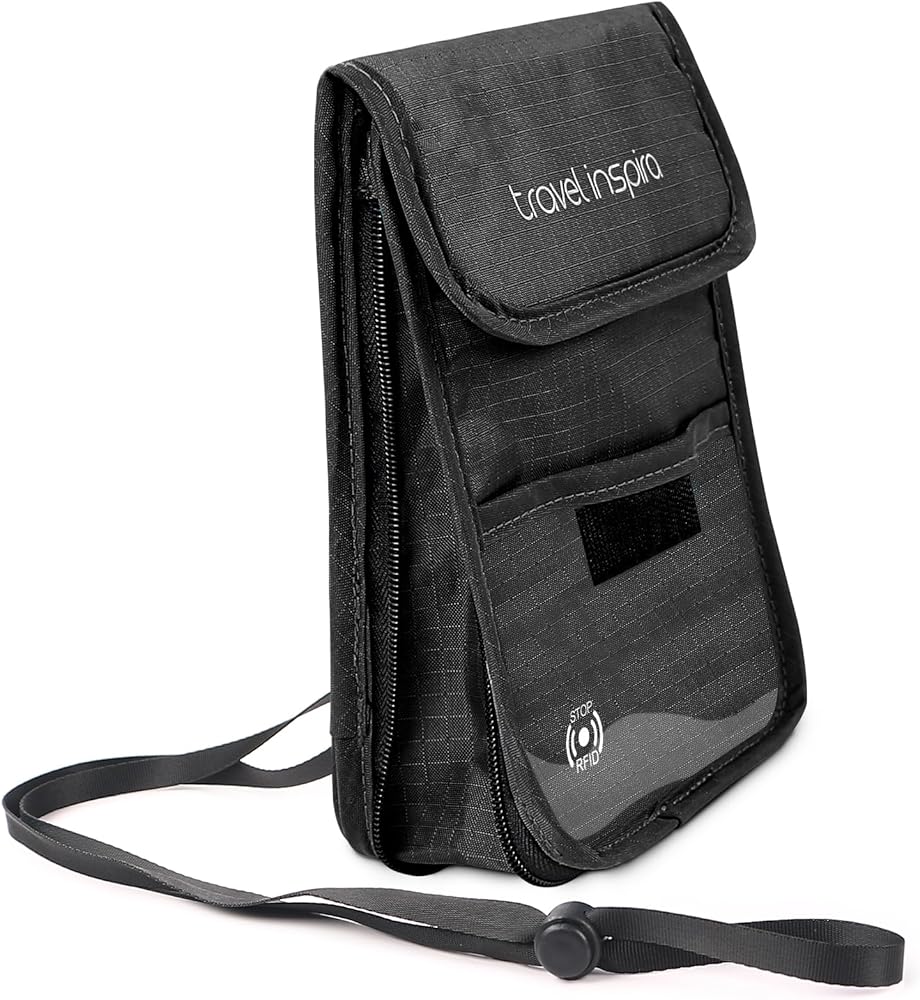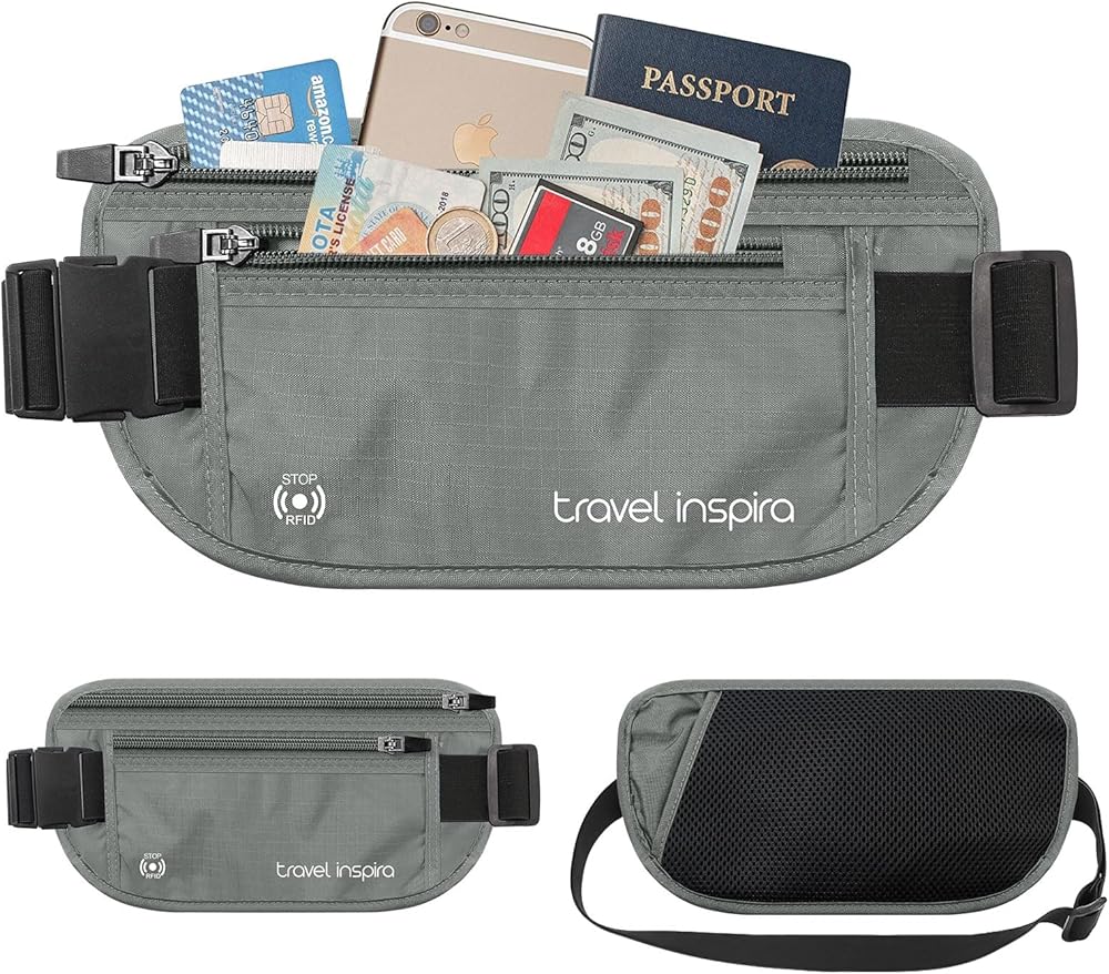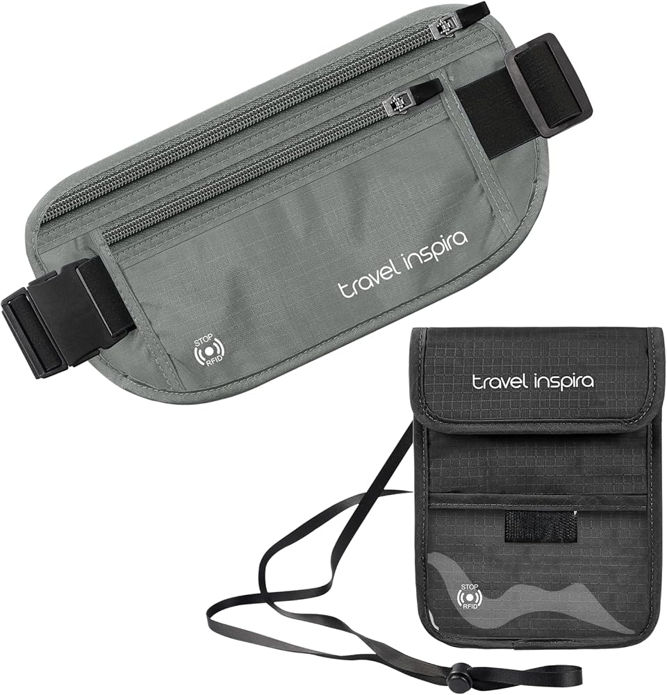 travel inspira RFID Blocking Travel Money Belt with Anti-Thief Zip - Slim Passport Holder and Premium Travel Neck Wallet with RFID Blocking - Water-Resistant Ripstop Nylon