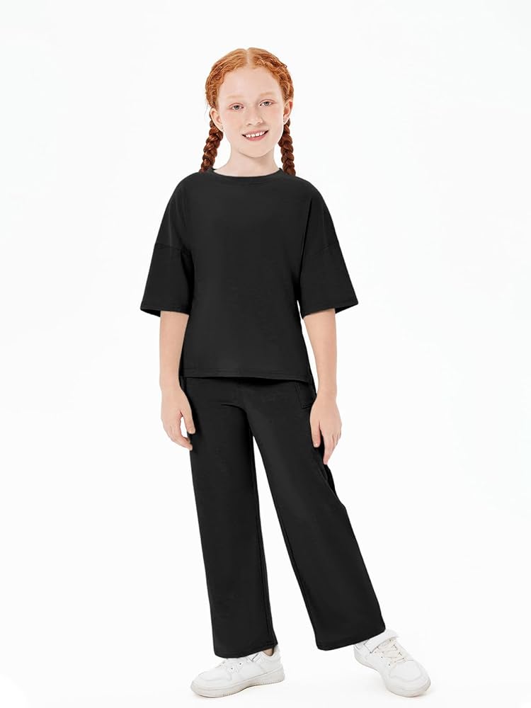 Unique Design: The girls oversized t shirts with half sleeve drop shoulder style, provides a relaxed and cool feel in hot summer. The elastic waistband offers a snug and adjustable fit, allows for easy and free daily exercise and sports