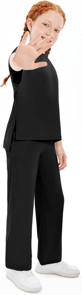 2 Piece Outfits: Girls clothes consists of 1* short sleeve shirt with classic round neck + 1* wide leg pants with 2 side pockets, can be worn alone or put together as a suit, a must-have item in a cute girl's wardrobe