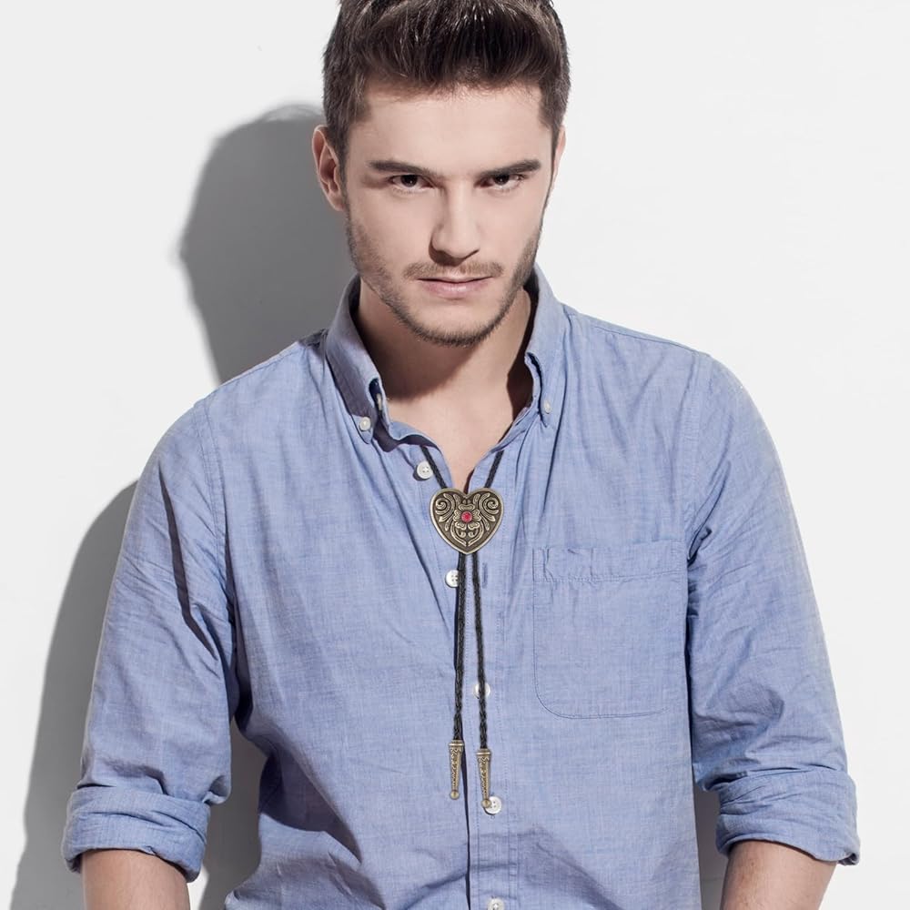 [High Quality]: These western ties are made of zinc alloy with clear prints, wearable and durable. The rope is hand braided leather rope, tough and will not break.