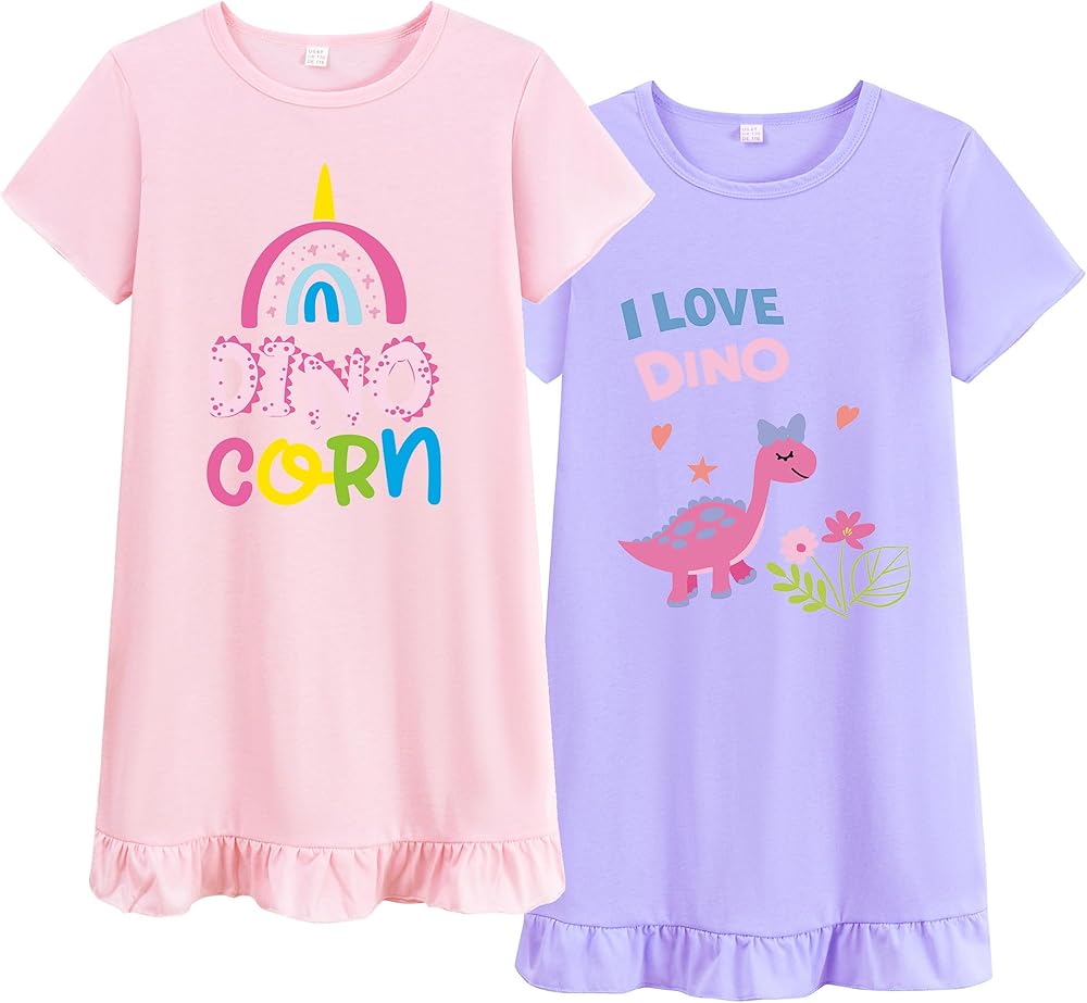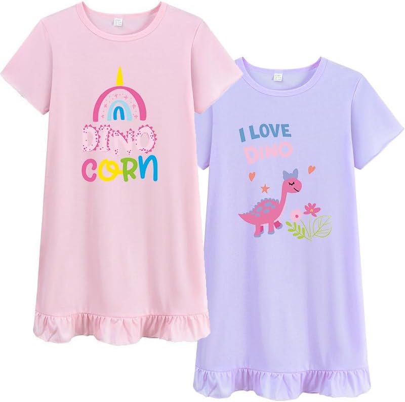 Size Note: Pack of Two. With this set, you get two nightgowns in different colors, giving your kids variety and options to choose from. It's like having two nightgowns in one. Age for 3-10 Years, Please refer to the size chart firstly instead of recommend age. For a looser fit, we recommend to go one size up. Both hand and gently machine washable, air dry.