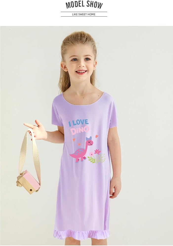 Features: Girls adorable sleeping gowns version is generous and playful, is design with ribbed neckline, round neck, easy for kids to take on/off, fit for all seasons, making them not only perfect for kids princess nightgowns sleepwear but also great for lounging around the house or even as a casual day outfit.