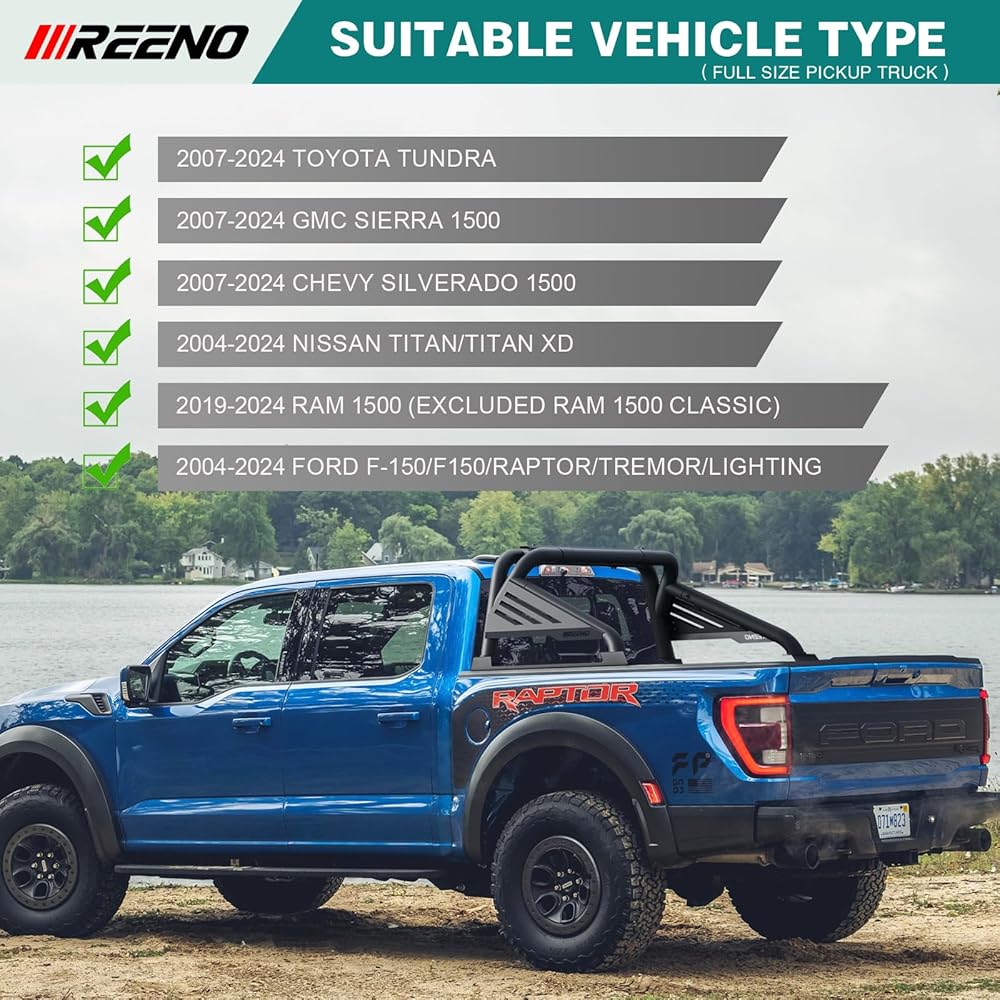 【FITMENT】 Compatible with most Full Size Pickup Trucks 2007-2024 Chevy Silverado 1500 / 2007-2024 GMC Sierra 1500 / 2007-2024 Toyota Tundra / 2004-2024 Ford F-150/F150/Raptor/Tremor/Lighting / 2004-2024 Titan/Titan XD / 2002-2024 Ram 1500