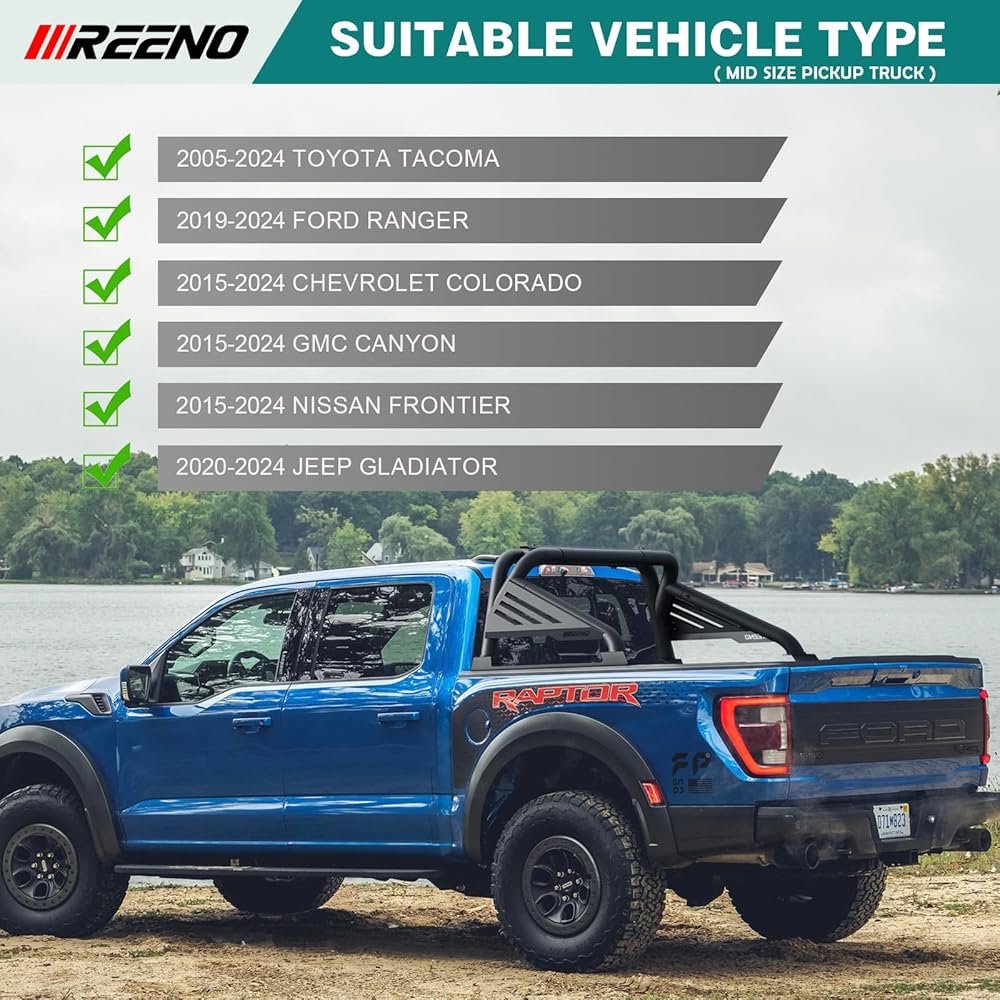 【FITMENT】 Compatible with most Mid Size Pickup Trucks, 2020-2024 JEEP Gladiator/2019-2024 Ford Ranger /2015-2024 Chevrolet Colorado/2005-2024 Tacoma /2015-2024 GMC Canyon /2015-2024 Frontier Pickup trucks.