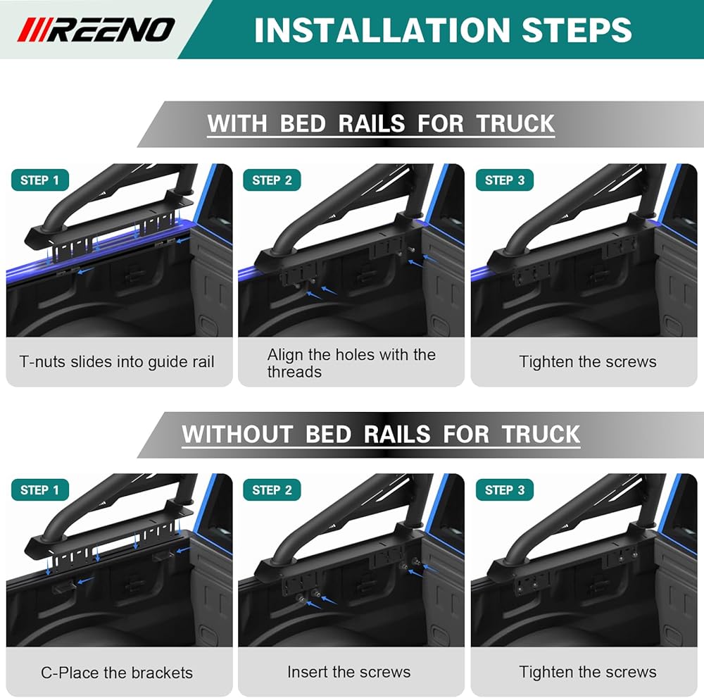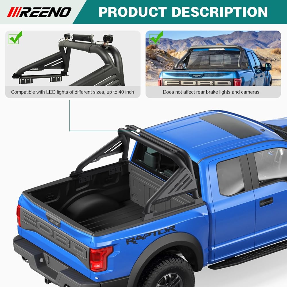 【INSTALLATION】Includes bracket that can hold a light bar up to 40 "(light bar not included).. Moreover, this product is compatible with tonneau covers and most tri-fold covers mounted on top of the truck bed rails; however, please note that the opening of the covers may be limited by a sport bar.