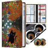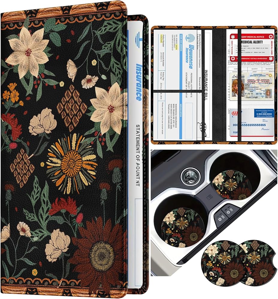 Slohif Car Registration and Insurance Holder - Boho Vehicle Glove Box Organizer Women with Magnetic Shut Leather Automobile License Holders Coasters Auto Accessories Case for Document