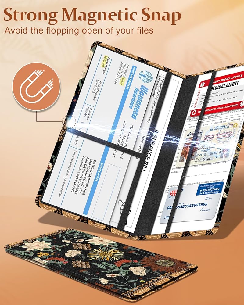 🚗Magnetic Shut - Featuring a magnetic suction mechanism for opening and closing,this organizer offers convenience and security.The magnetic seal ensures that your documents are kept secure while allowing for effortless access whenever needed.It's lightweight and slim, easily fitting into glove compartment,center console, door pocket,seat pocket,sun visor,bag,etc.