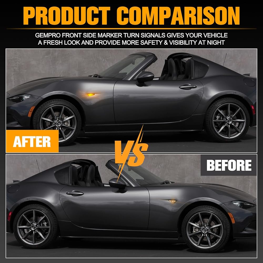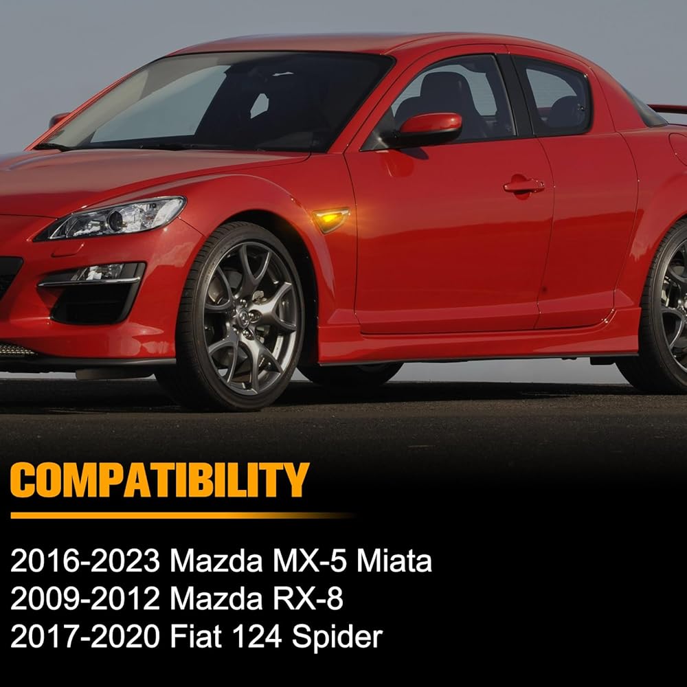 COMPATIBILITY: This GemPro LED side marker light assembly is compatible with 2009-2012 Mazda RX-8, 2016-2023 Mazda MX-5 Miata, 2017-2020 Fiat 124 Spider.