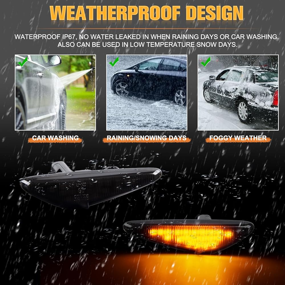 DURABLE DESIGN: These turn signal blinker marker lamp are weather-sealed, Waterproof/Dust proof/Shockproof. Made of light-weight durable ABS plastic housing and tough PC lens, lifespan more than 55000 hours.