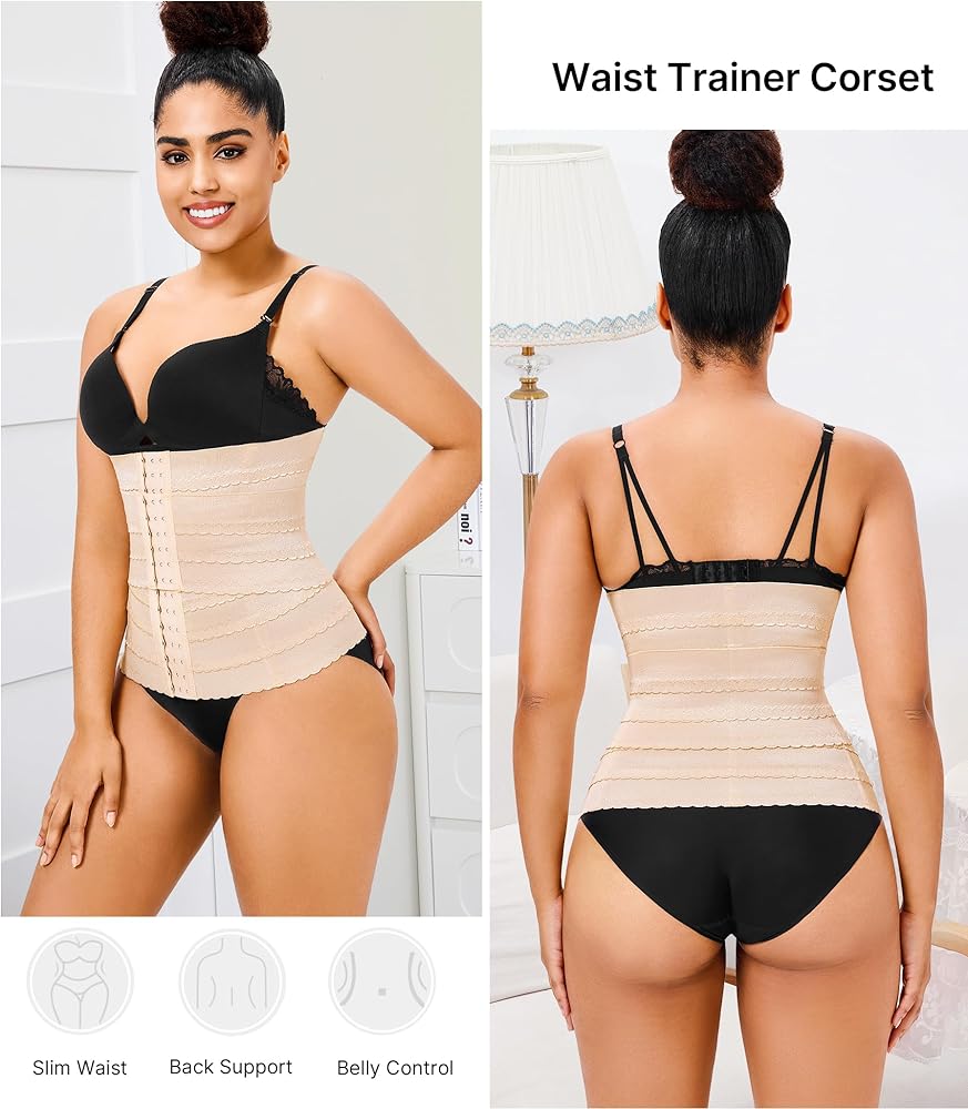 Multi-Functional Corset Shapewear. Shapewear tummy control accompanies you throughout the day, helping you achieve a more flattering figure.—whether for work, leisure, sports, or formal occasions. Waist trainer for women working out serves as an effective sports girdle, offering core support and improving posture during exercise. Additionally, it can also be used as a postpartum belly band that provide gentle compression to aid recovery and restore your pre-pregnancy shape.