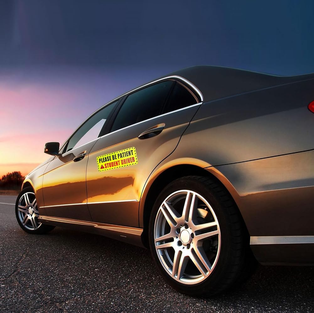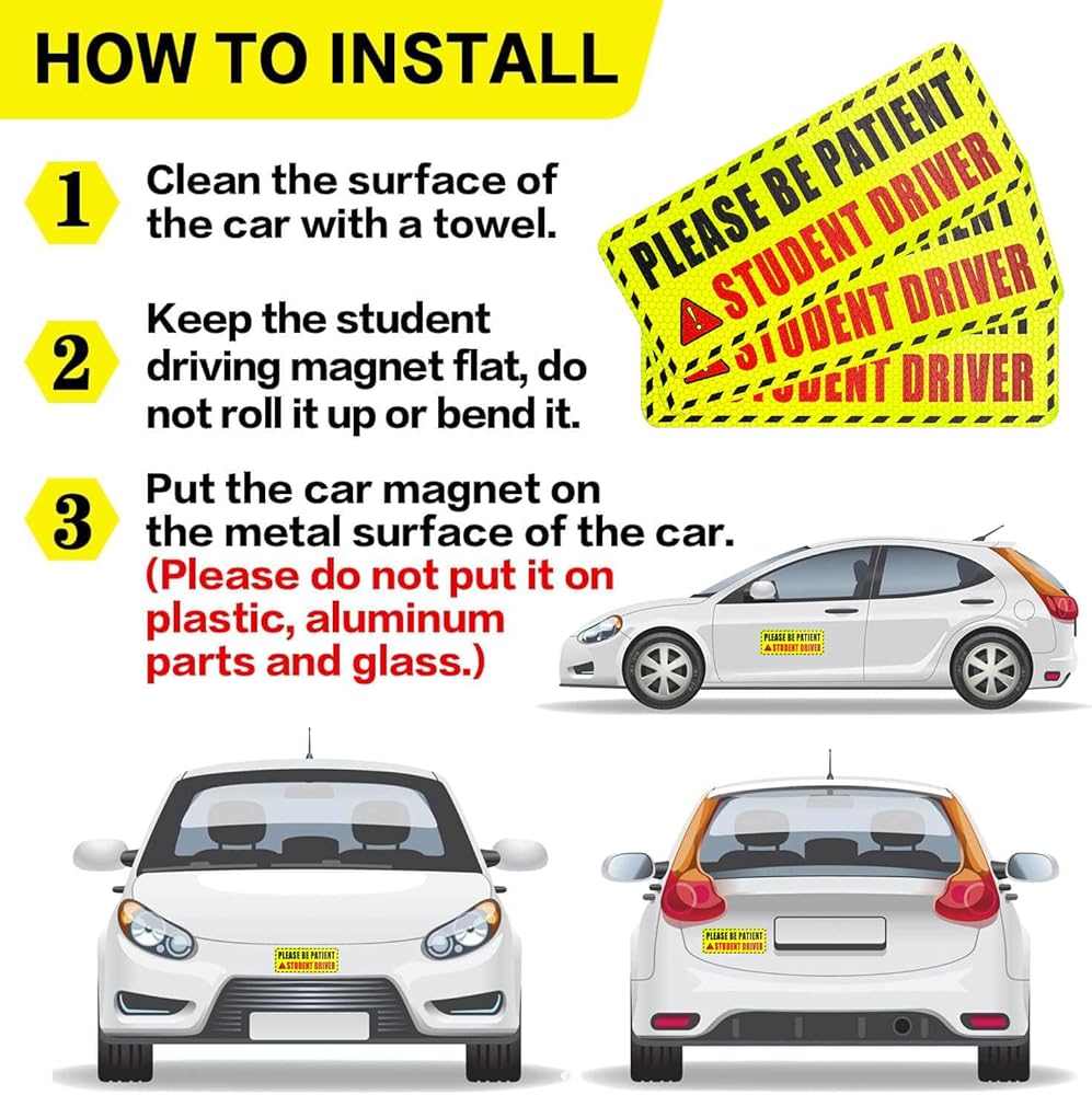 HIGHLY REFLECTIVE: Our car "Please Be Patient Student Driver" signs reflect lights better so other drivers from the side or back can easily see you're driving at night. Thereby reducing your tension, enhancing your driving confidence, and improving the safety of night driving.