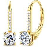 Dangle Moissanite Earrings for Women 𝐌𝐨𝐦 𝐆𝐢𝐟𝐭 Hypoallergenic - S925 Sterling Silver Earrings 18K Yellow Gold Plated D Color Round Cut Leverback Earrings for Her 𝐌𝐨𝐭𝐡𝐞𝐫'𝐬 𝐃𝐚𝐲
