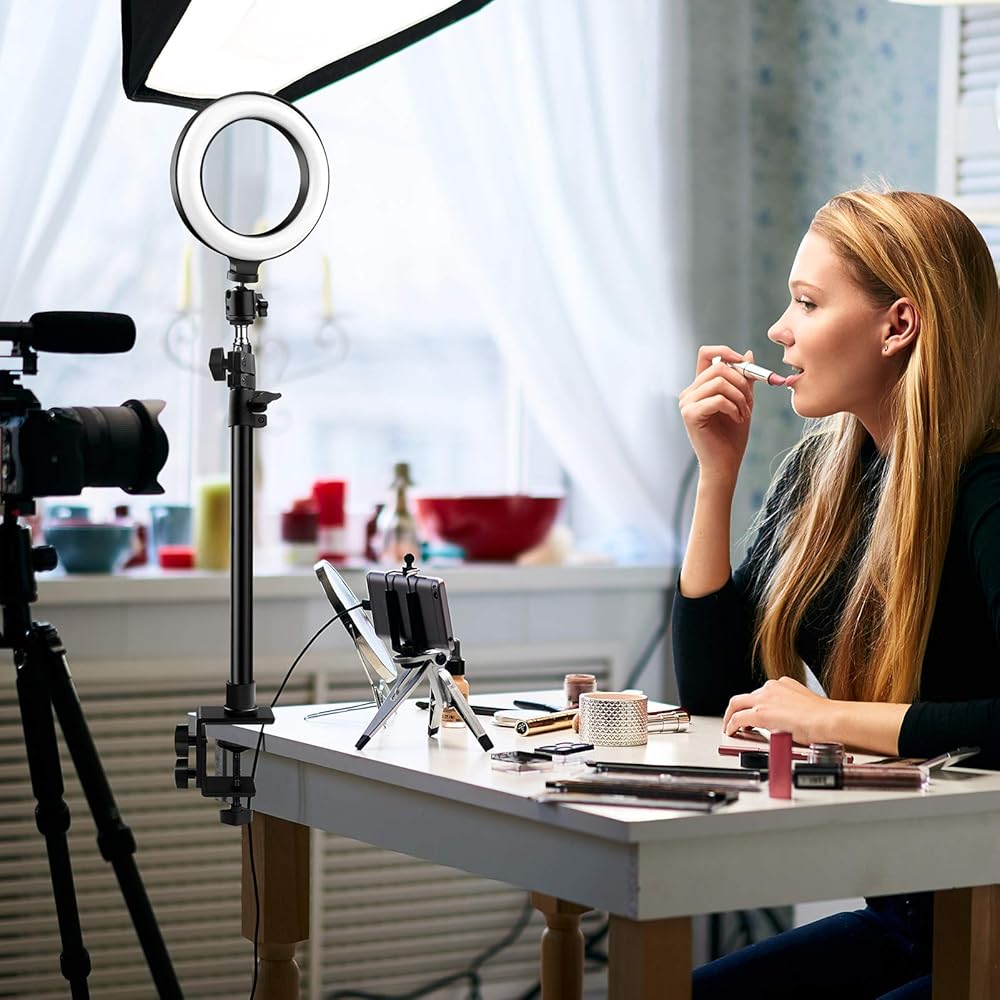 【Adjustablement with Locking Knob】Adjustable Desktop C-clamp Stand: The S size height could be extended from 15.5 to 25.5 Inch and L size from 21- 45 Inch as you like. The ball head can ensure 360 degree horizontal rotating and from -90 degree to 90 degree tilting for panoramic photography when adjusting the angle. You can use the knob to adjust to the desired angle to meet your needs at different angles.