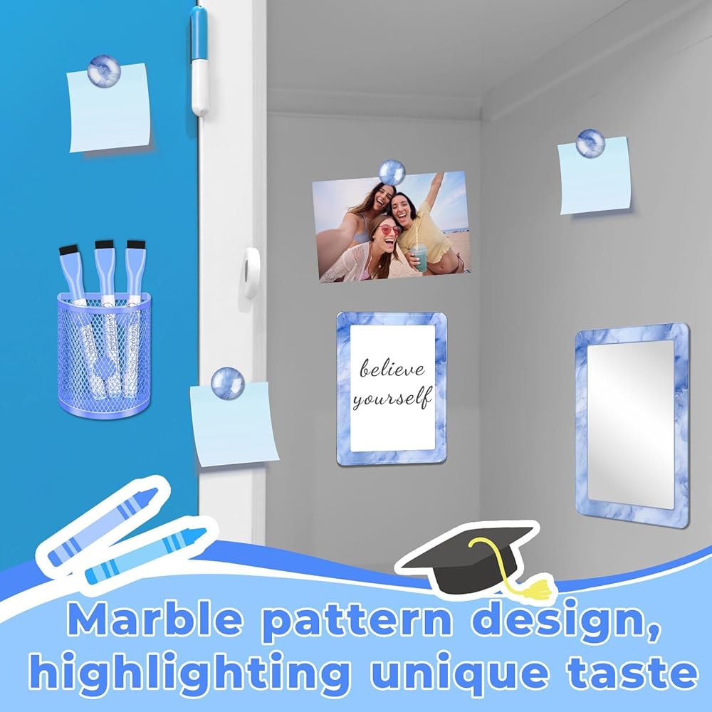 Locker Supplies Kit: Our locker decorating kit includes 1 dry erase whiteboard, 1 mirror, 1 organiser, 3 dry erase markers and 4 fridge stickers. Keep your essentials within reach! Plus, we have a wide range of colours for you to choose from!