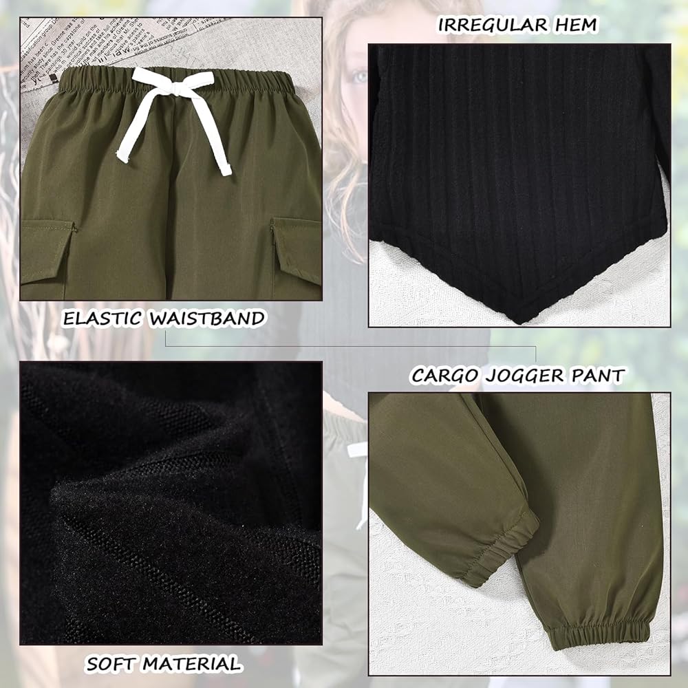 PREMIUM MATERIAL: Made with comfort and soft in mind, this long sleeve pullover sweatshirt and cargo jogger pants set is perfect for all day wear. Soft texture, skin-friendly material brings your girls comfortable feelings all spring, autumn and winter.