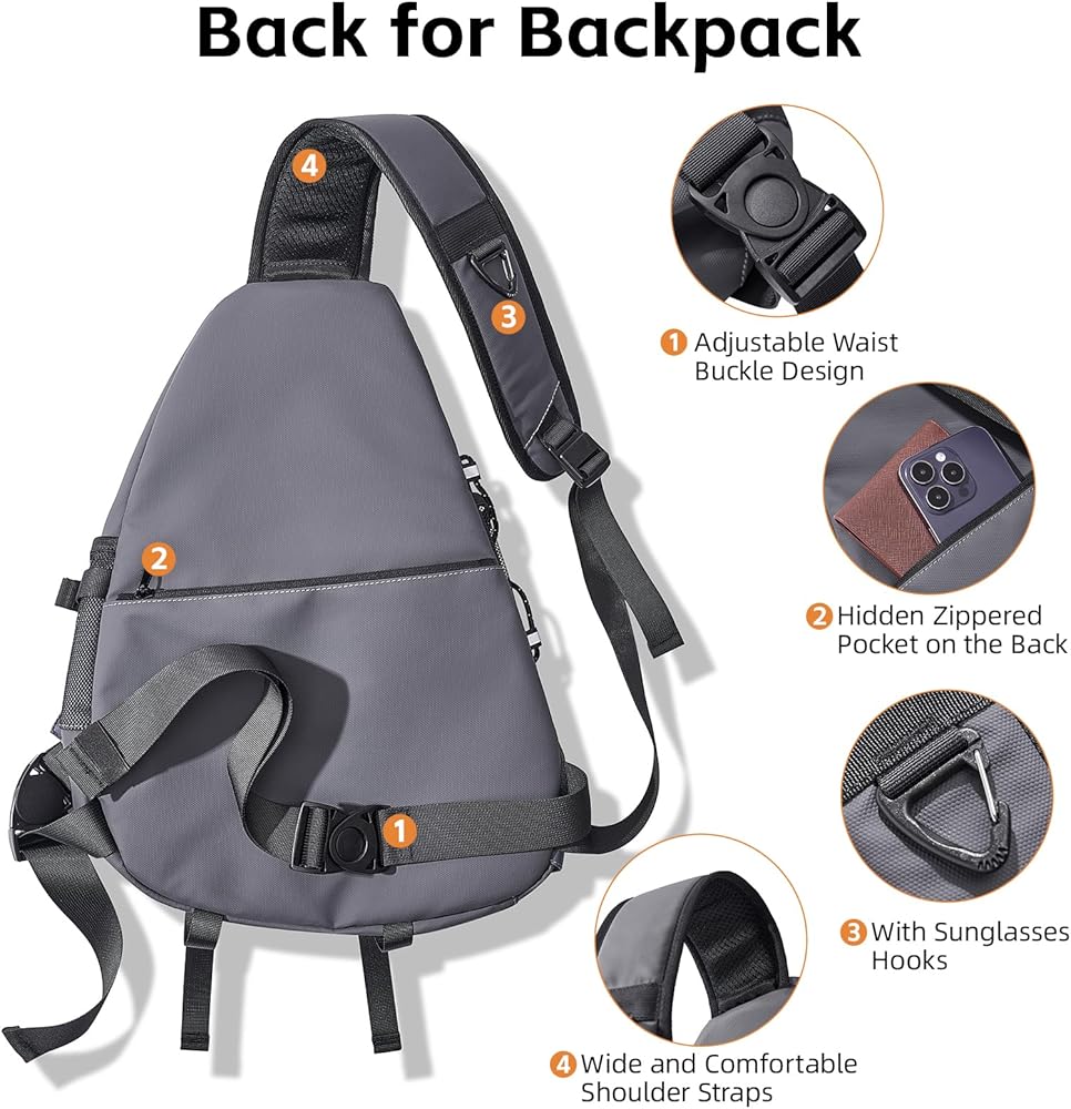 【Breathable Shoulder Strap Design】The widened and thickened shoulder strap design ensures that even if sling bag is full, there won't be a noticeable sense of weight-bearing. Adjustable shoulder strap design, suitable for people of different body types. The shoulder strap comes with a sunglasses hook, which can be used to hang various small items, such as sunglasses, keys, and so on.