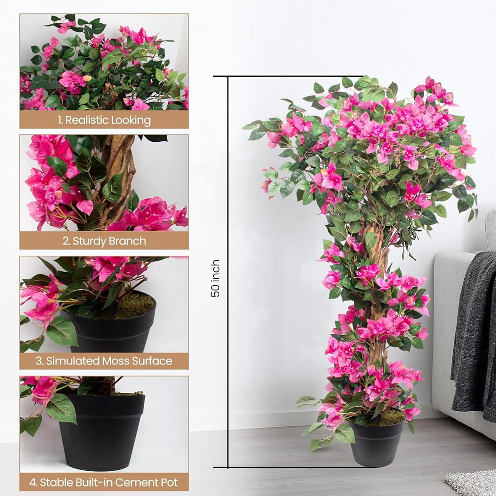 Lifelike Appearance: Our artificial Bougainvillea tree is expertly crafted with detailed textures and vibrant colors for an ultra-realistic look. Additionally covering a moss surface in the pot makes it more realistic.