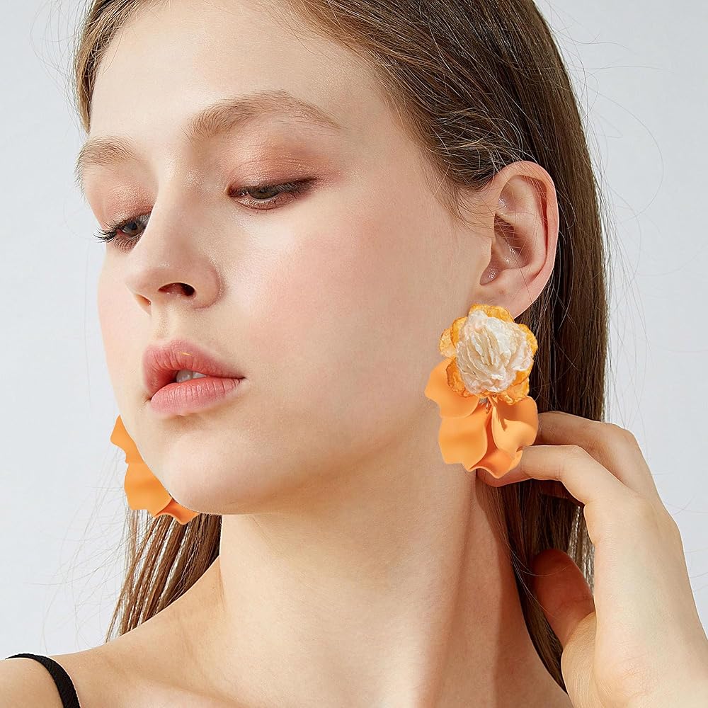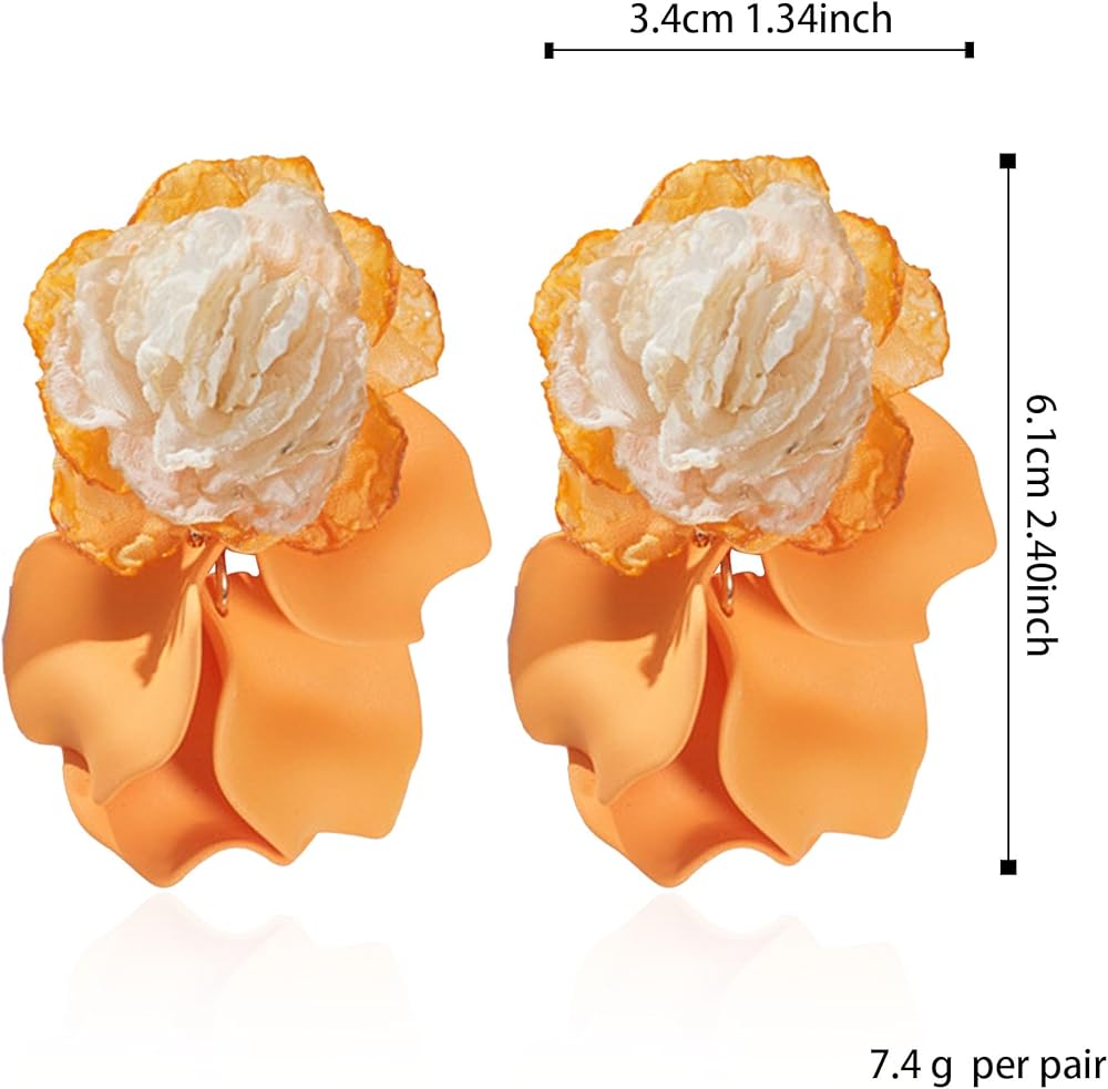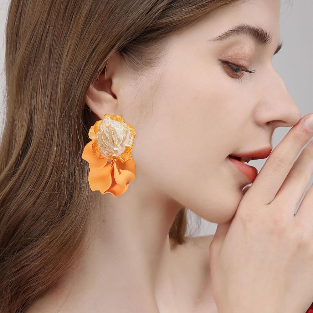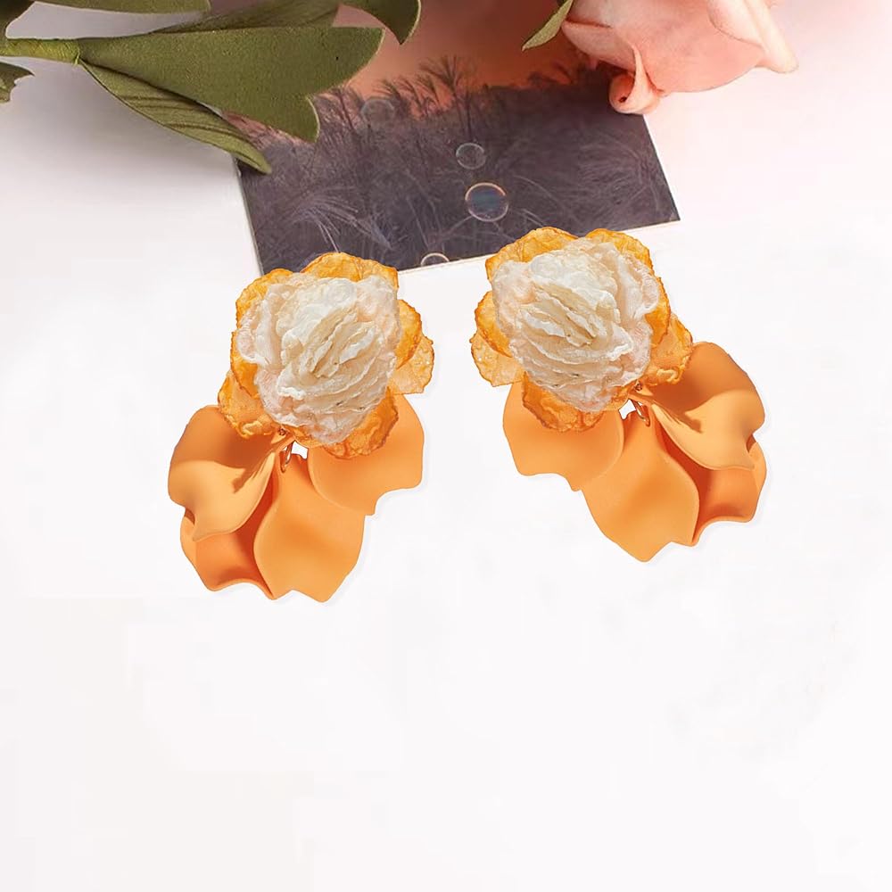 💎 SUPERIOR MATERIAL💎 - The petal earrings adopts a refined and fashionable 14K gold plated chain with alloy that designed with high quality acrylic.The brightly colored petals use advanced painting and sanding techniques to make them look more textured and realistic.Easy to wear and off, comfortable to wear.