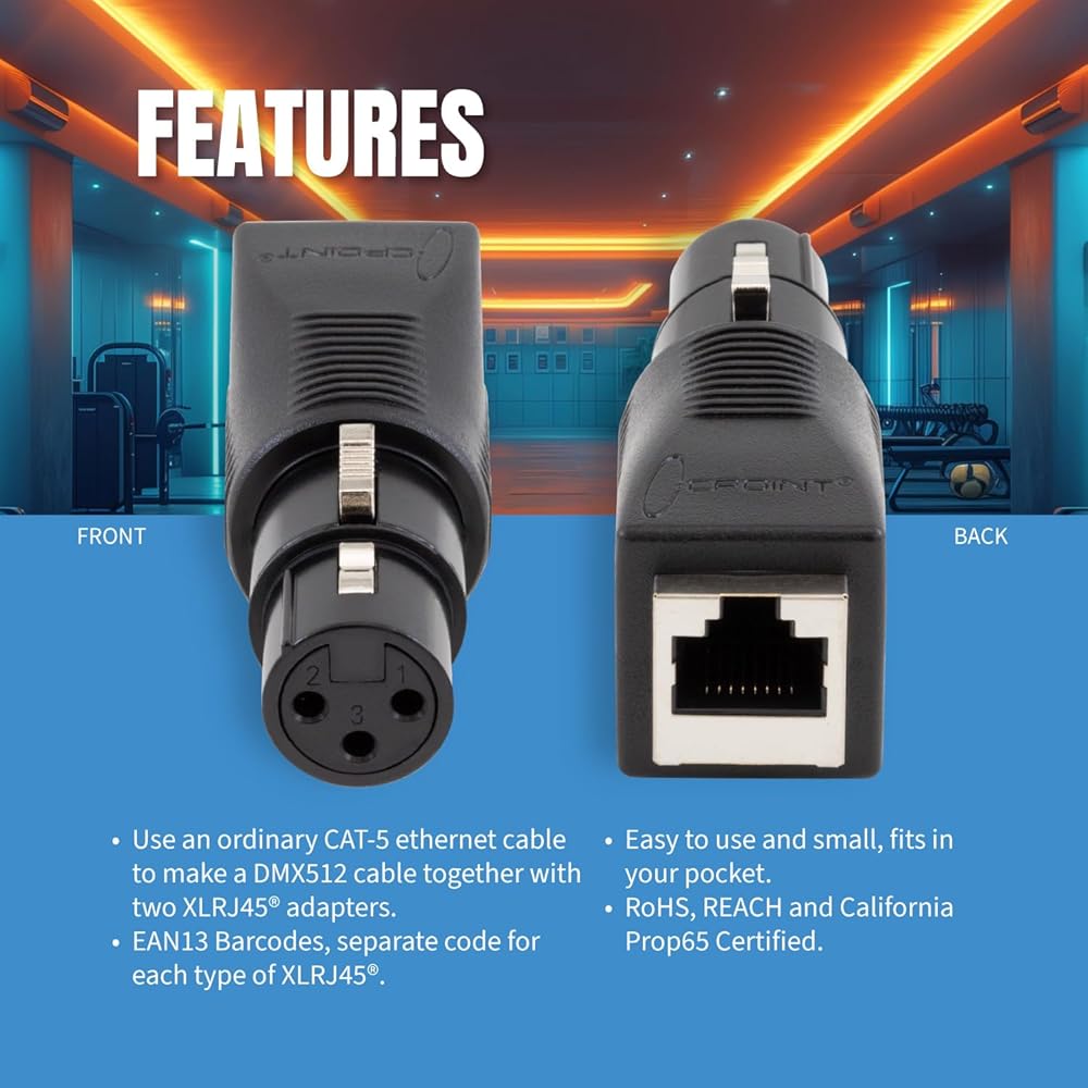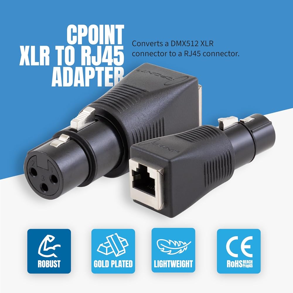 SIRS-E 2-Pack - CPoint XLR RJ45 Adapter CAT-5 Ethernet to DMX512 Cable Converter, Female 3-Pin, XLRJ45-3F