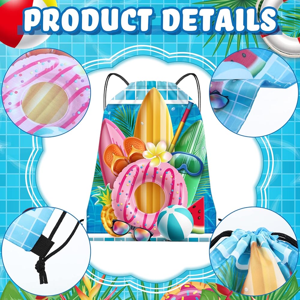 Lightweight and Reliable: made of polyester material, this pool party drawstring goody bag is lightweight and well printed, not easy to break, tear and fade, solid and reusable, can serve you for a long time