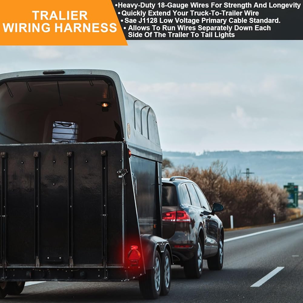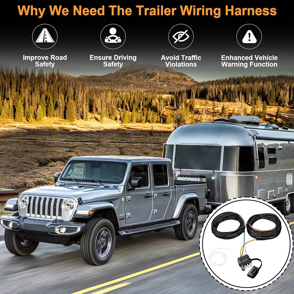 【Exceptional Durability 】The 4 way trailer wiring harness is made of a thick PVC wire coating and premium copper wire, with an additional layer of robust black nylon mesh tubing on the exterior,ensuring extended longevity and excellent resistance against harsh weather elements, thereby providing reliable performance in various conditions.