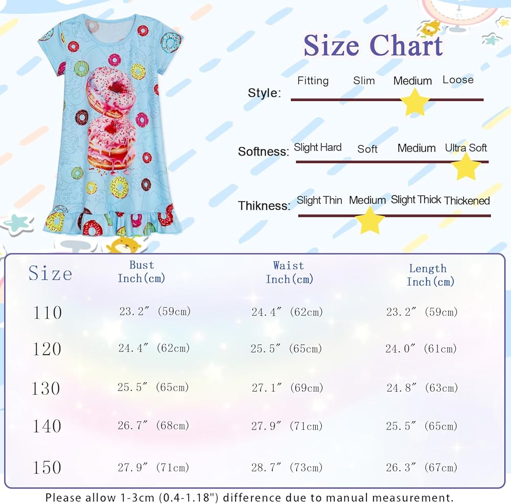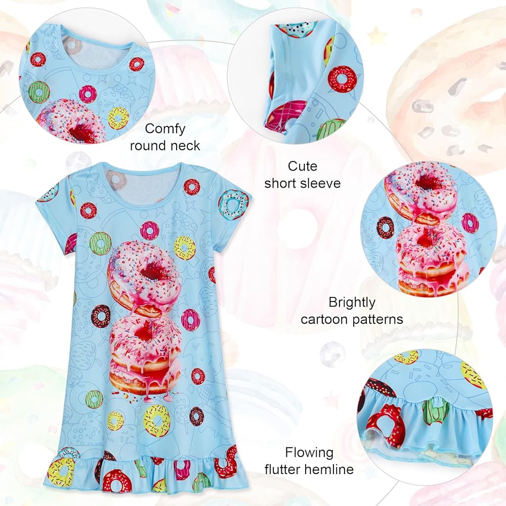 Girls nightgown is perfect for all seasons,suitable for sleeping, casual daily wear,playwear,pajama party.Also a perfect choice for birthdays,parties,Christmas, New Year gifts,to bring in sweetest dreams for kids.
