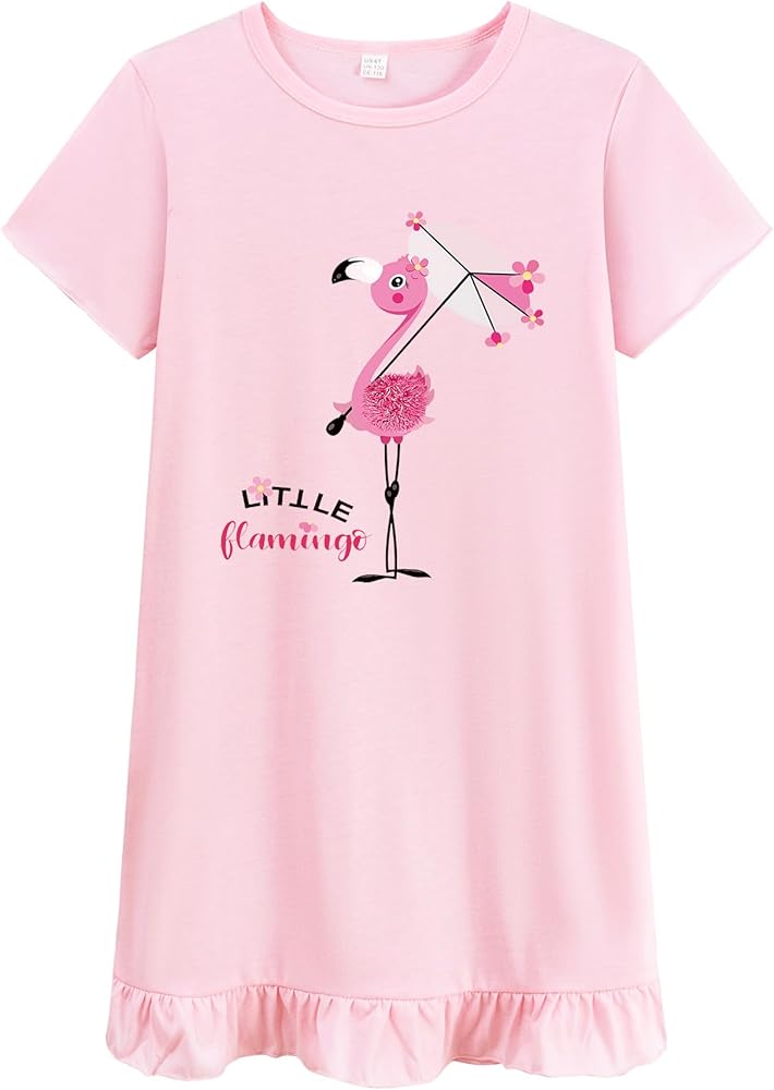 Features: Girls adorable sleeping gowns version is generous and playful, is design with ribbed neckline, round neck, ruffle hem, easy for kids to take on/off, fit for all seasons, making them not only perfect for kids princess nightgowns sleepwear but also great for lounging around the house or even as a casual day outfit.