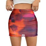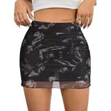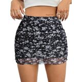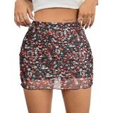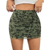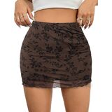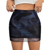 Mesh Ruched Bodycon Short Skirt High Waist Sexy Mini Skirts for Women