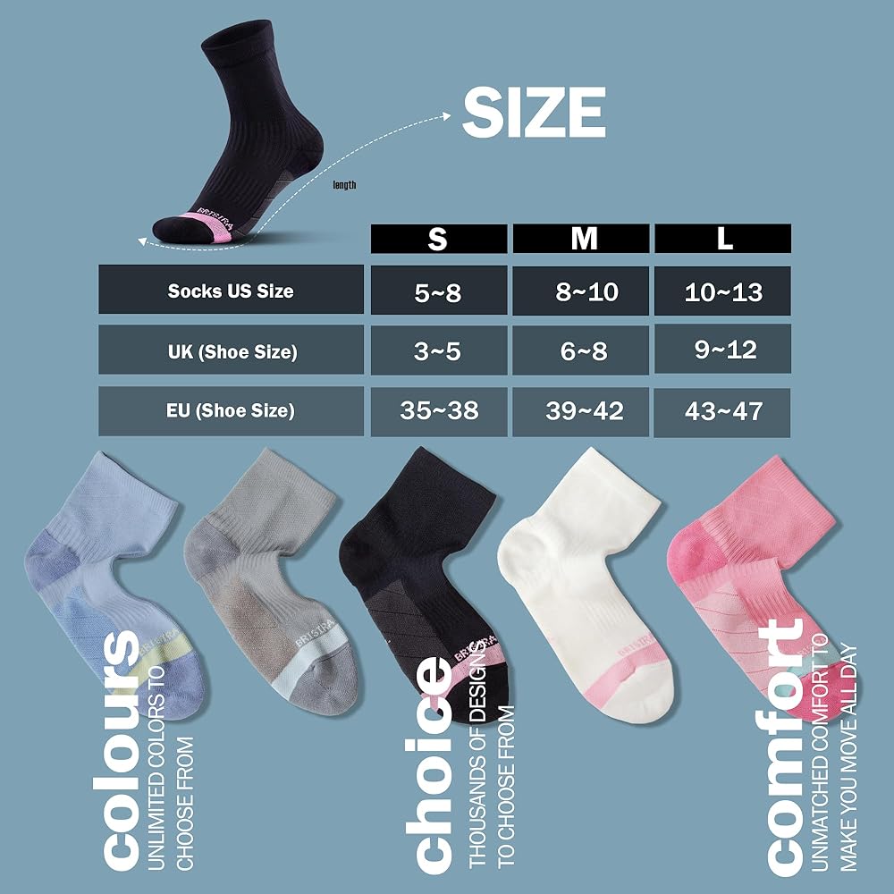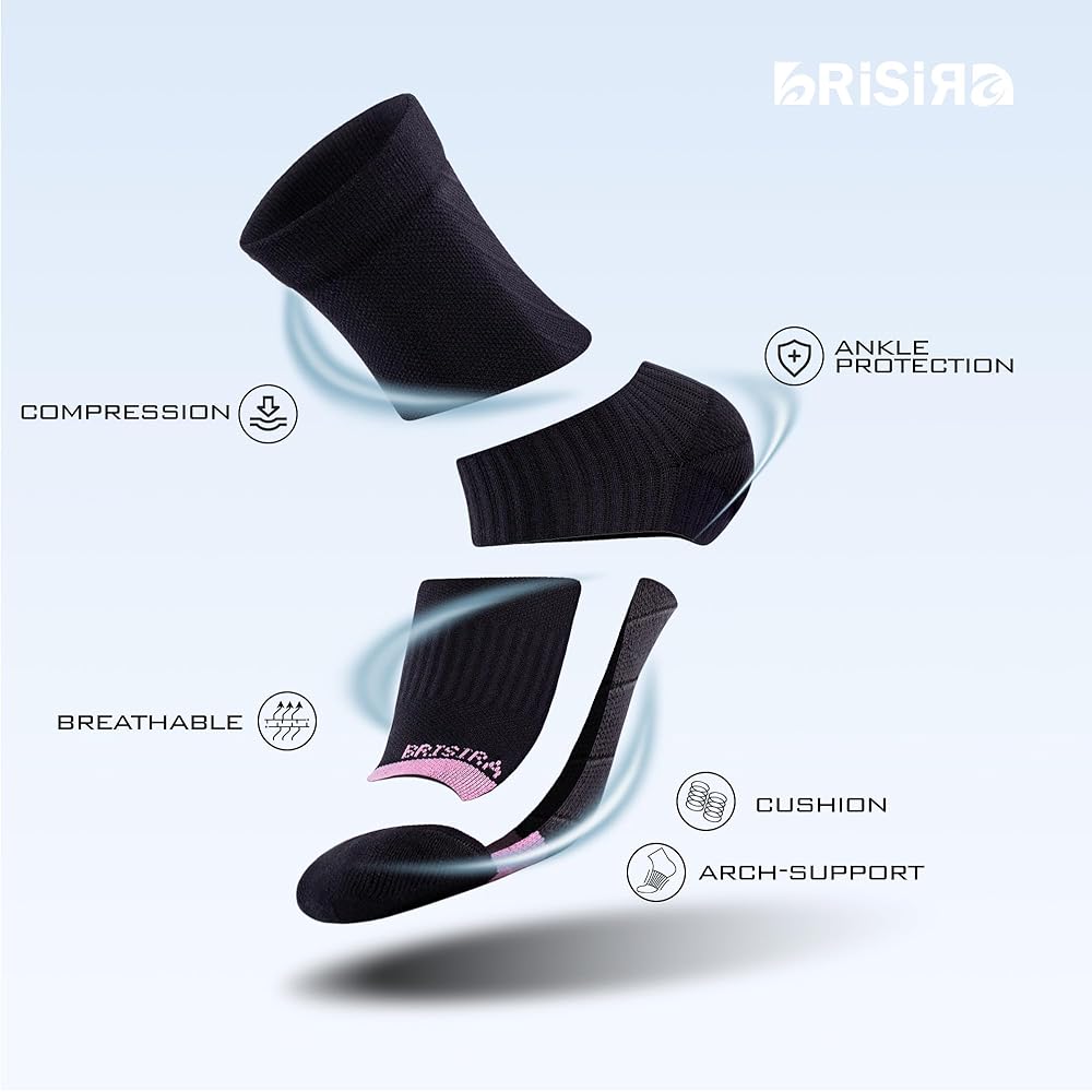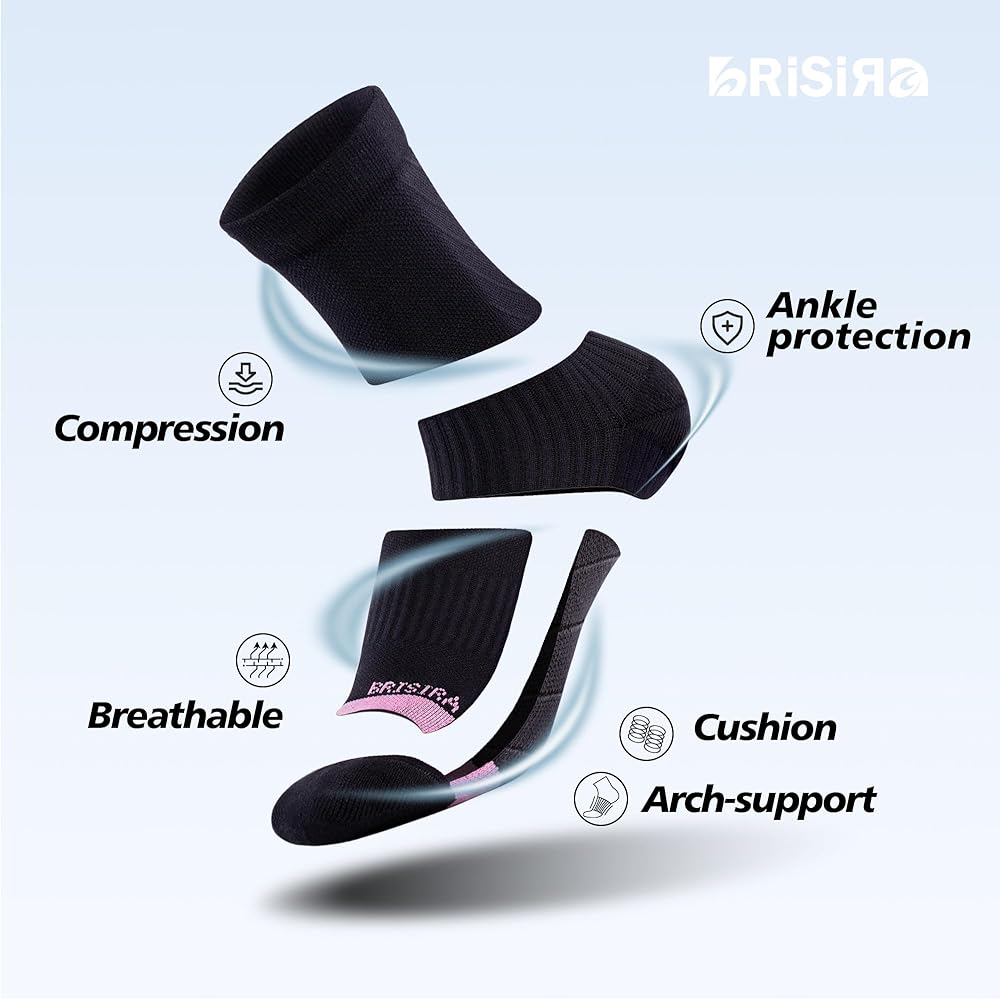 Cushioned & Anti Blister : Brisira women socks are equipped with strategic padding that provides excellent protection and prevents friction, allowing you to enjoy your activities without any worries. Bid farewell to painful blisters and discomfort caused by friction with our thoughtfully engineered cushioned design.