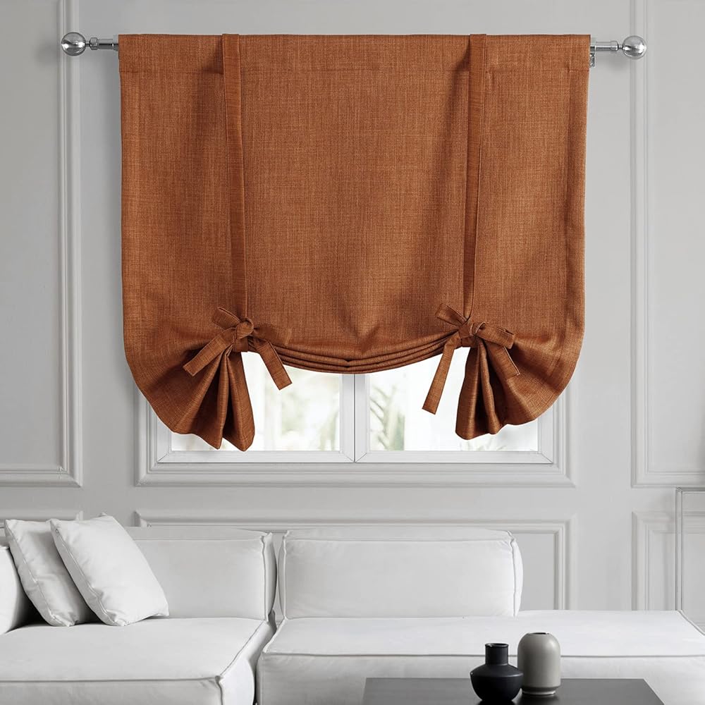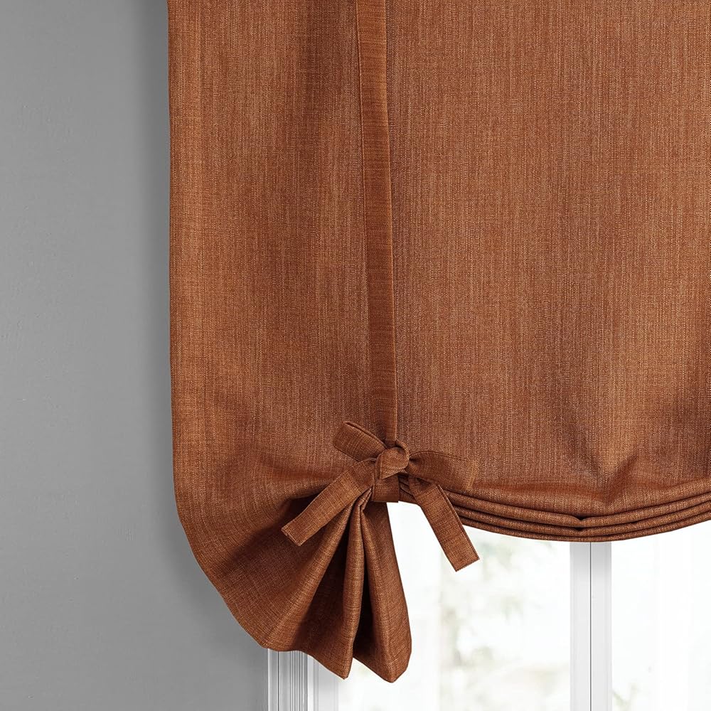 HPD Half Price Drapes Faux Linen Room Darkening Tie Up Curtains for Windows Roll Up Balloon Curtain for Living Room, Kitchen 46 X 63 (1 Panel), BOCH-TU18517-63, Desert Orange