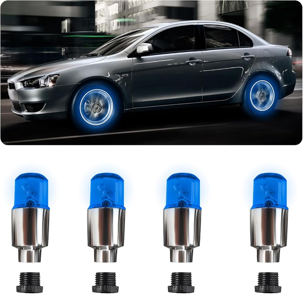 4 PCS LED Tire Valve Lights, Waterproof Light up Air Neon Bicycle Motorcycle Tyre Valve Flash Lights, Bike Truck Golf Cart Wheel Assemblies Lamp, Exterior Car Accessories (Blue)