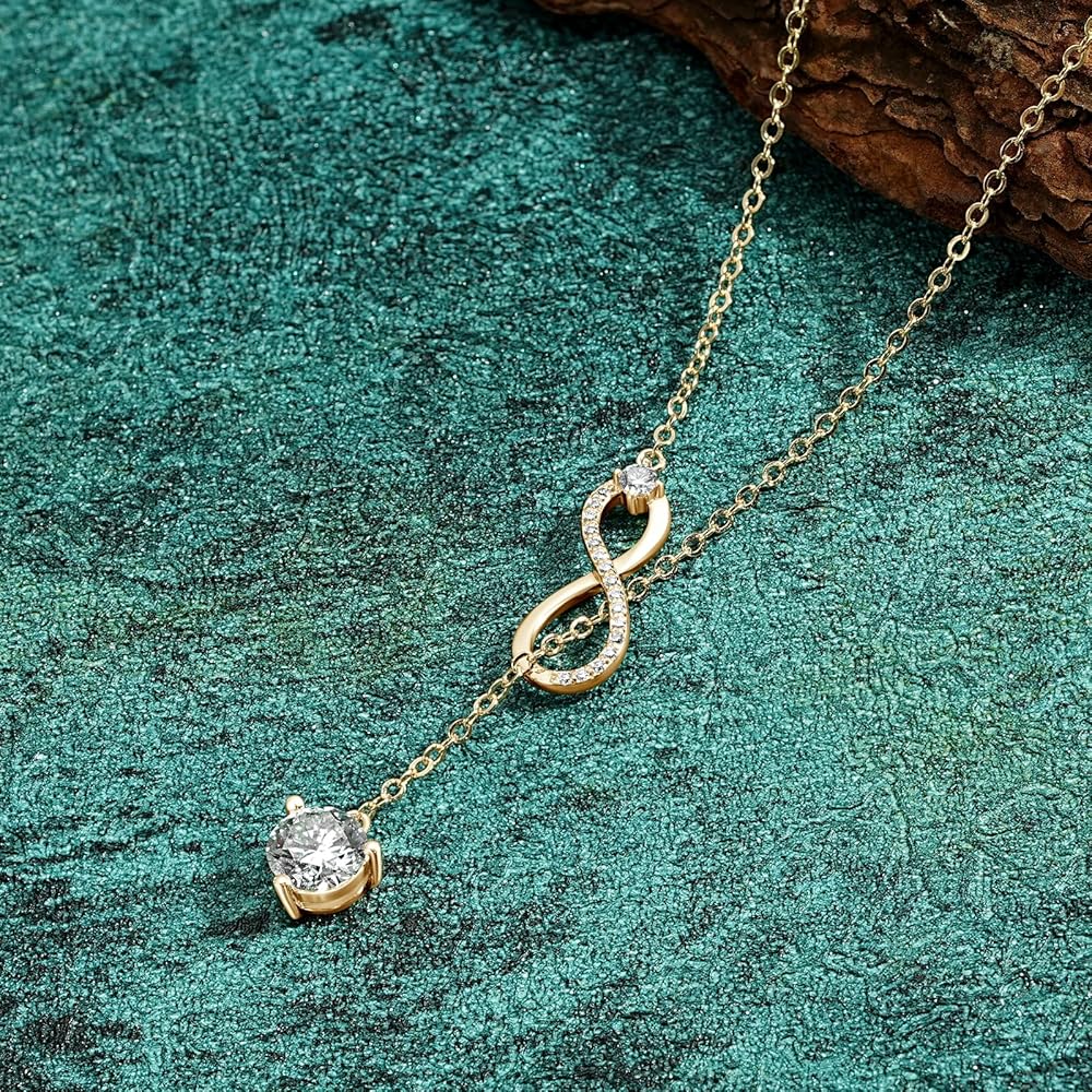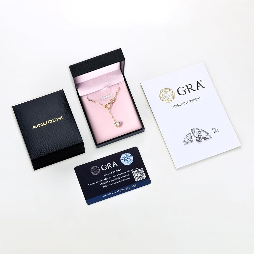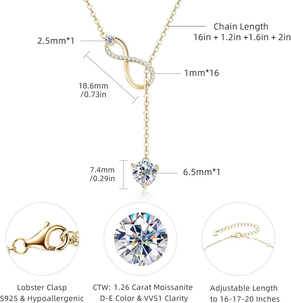 💎 Exquisite Moissanite Pendant: The dainty lariat drop long Y pendant necklace features a stunning 1.0CT moissanite diamond pendant, 16pcs side stones set on the Infinity twist, ct.tw. 1.26 moissanite diamonds captivates the eye with its D Color VVS1 clarity and accompanied with a Certificate of Authenticity.