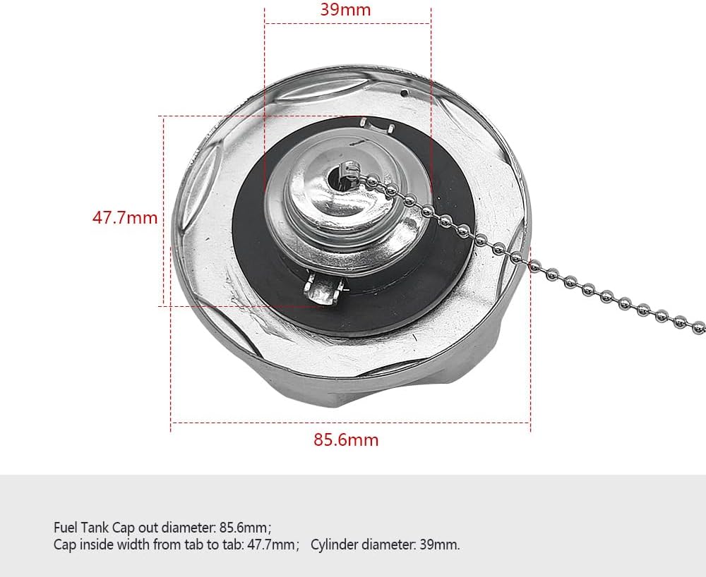 Stainless steel fuel tank cap with built-in rubber gasket for good sealing.